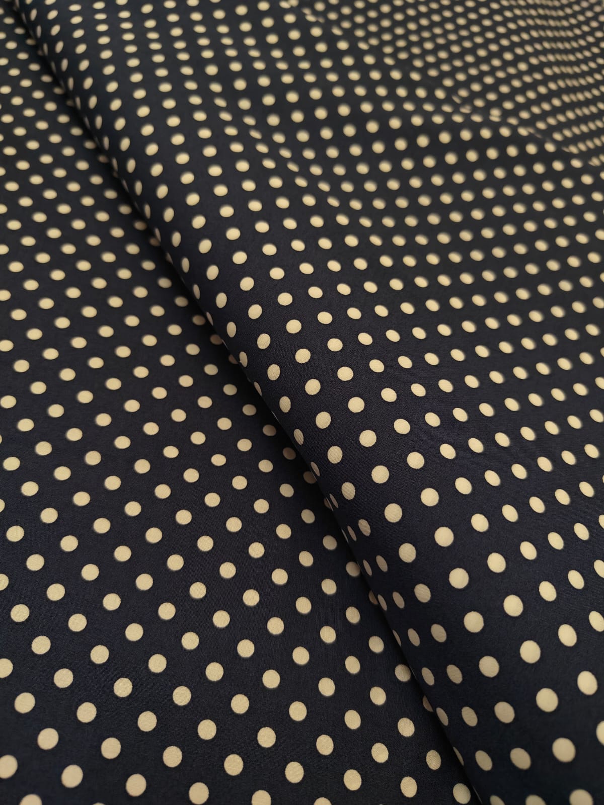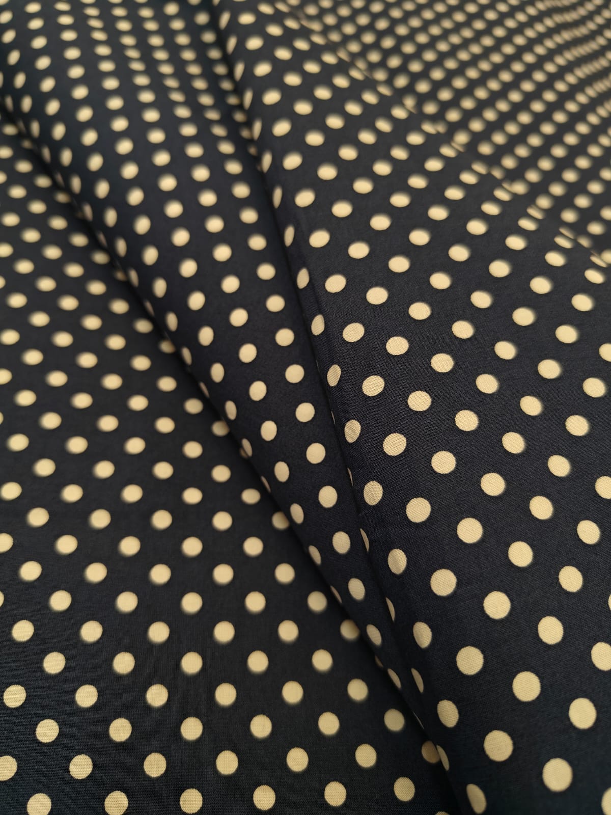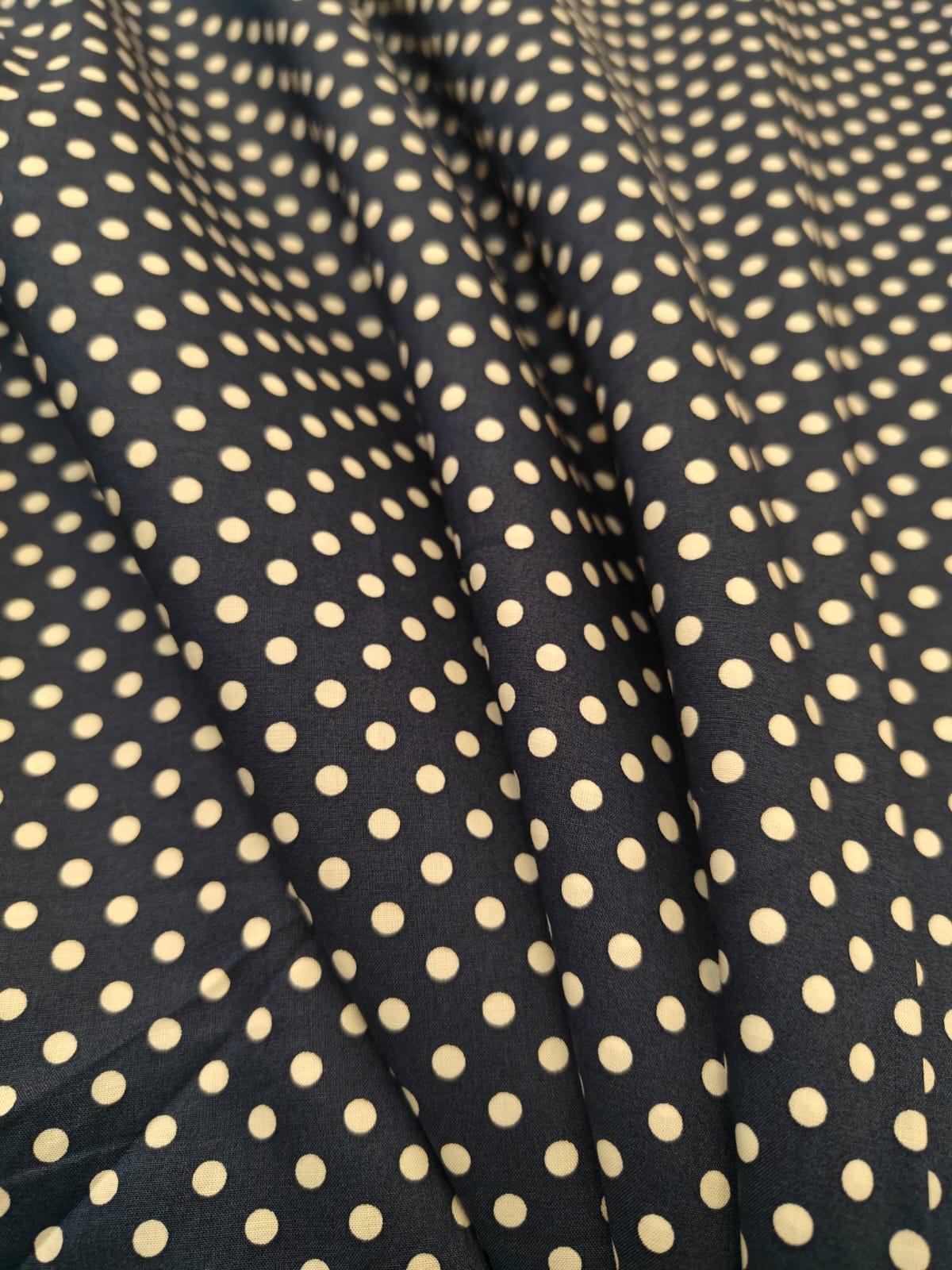 100% cotton poplin peach finish fabric navy blue with white dots [20433]