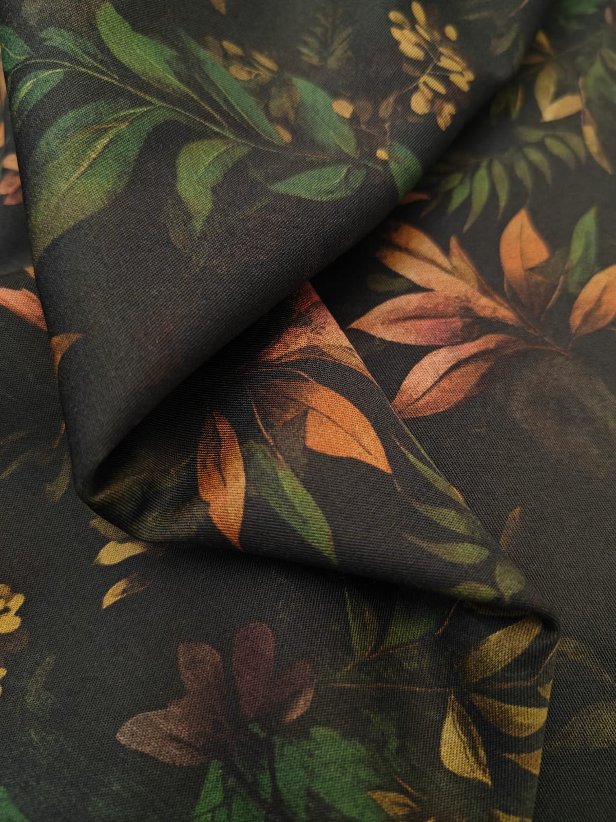 100% cotton poplin  print peach finish  jungle print leaves  [20402]