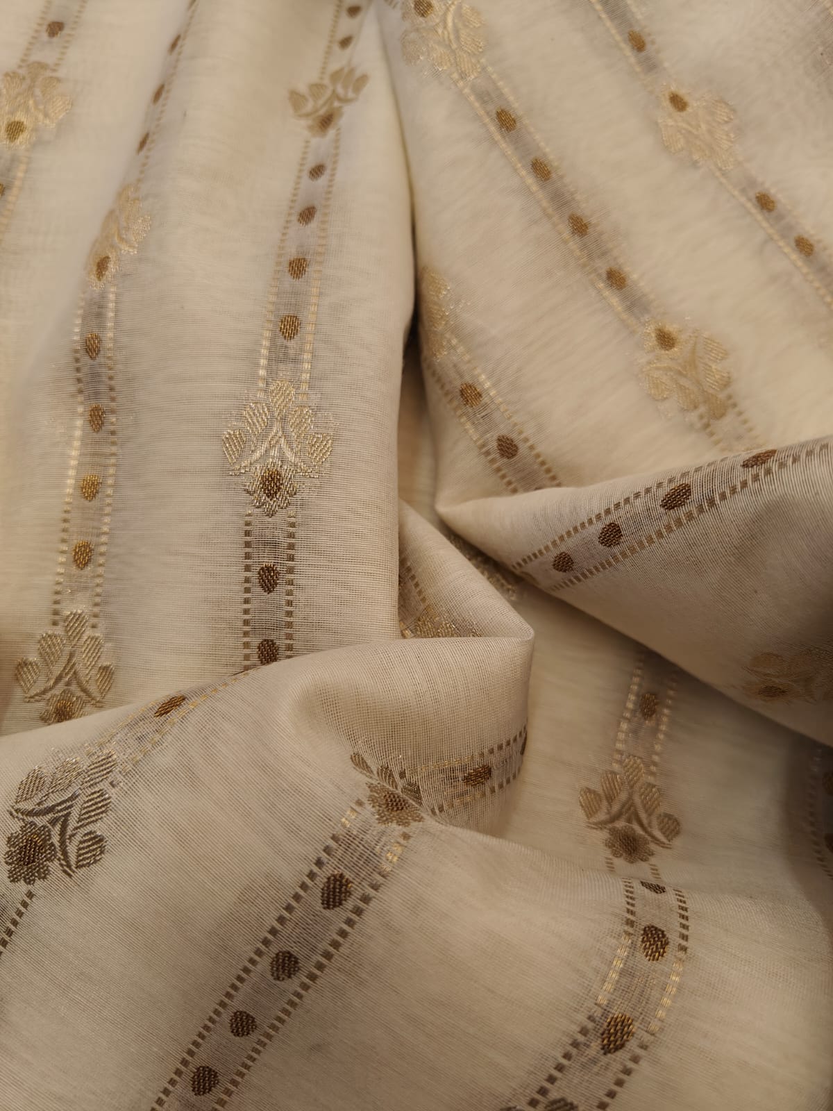 As luxurious as it seems, the art of brocade has transcended from the age old era of opulence and royalty. Conceptualized as a naksha (design) on paper first, the nakshabandha (designer) translates the design on Banarasi silk weaves, using fine gauze or gold or silver threads with immaculate precision into patterns that range from artistic elaboration to minimalistic intricacy. Romance with royalty in your outfit daily.