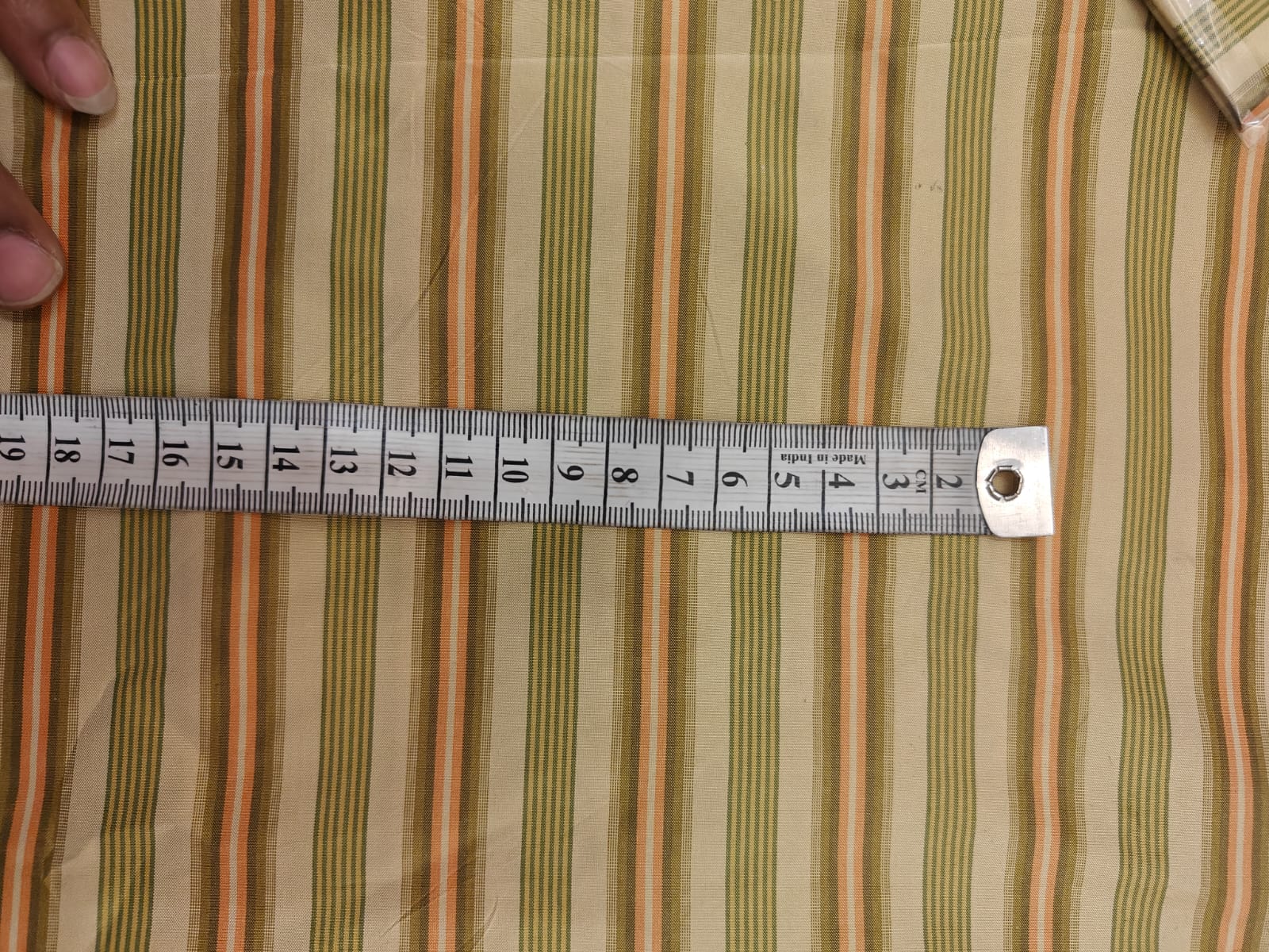 100% silk Taffeta  stripes in golden green,green and peachy orange TAFS184