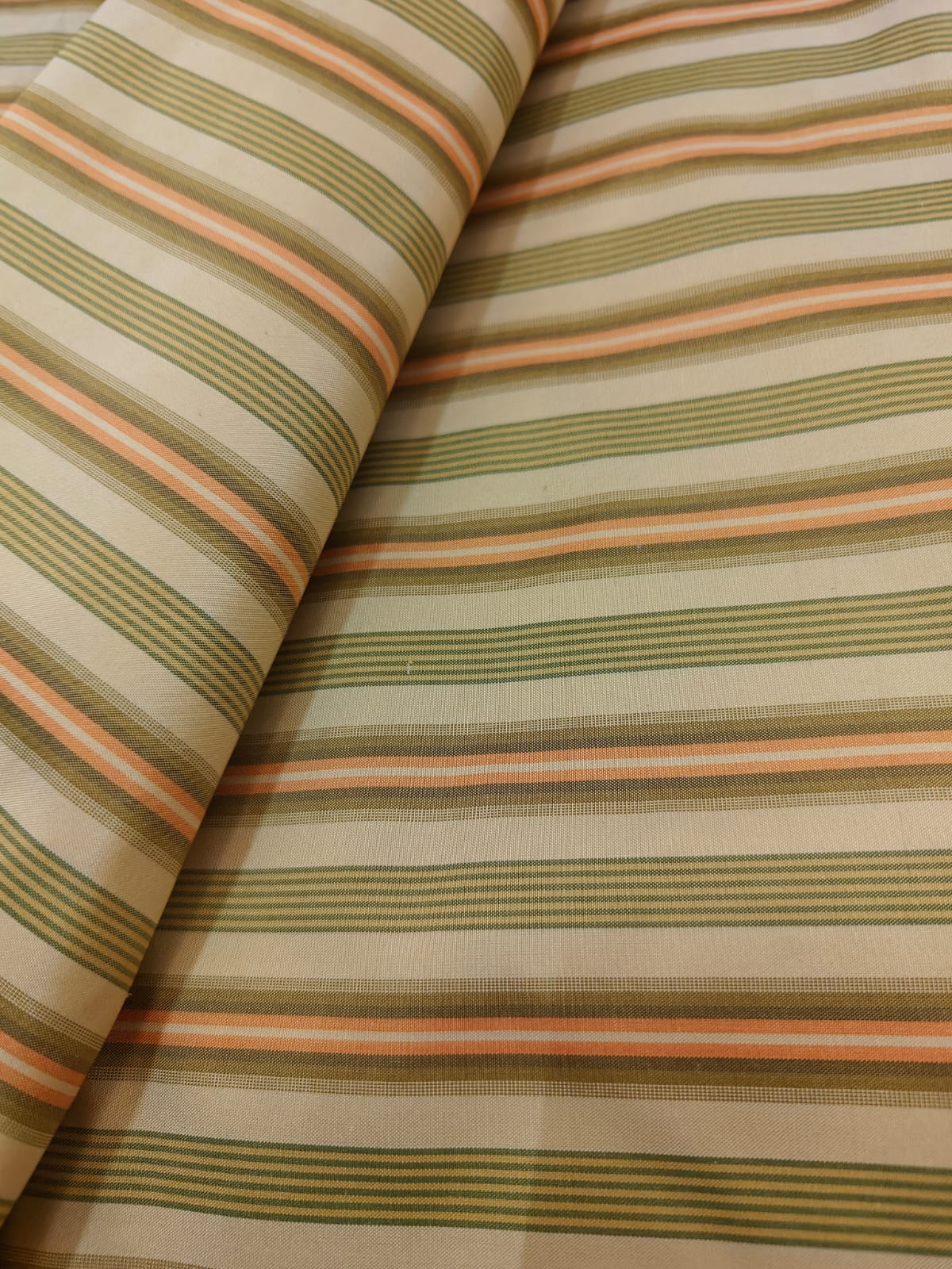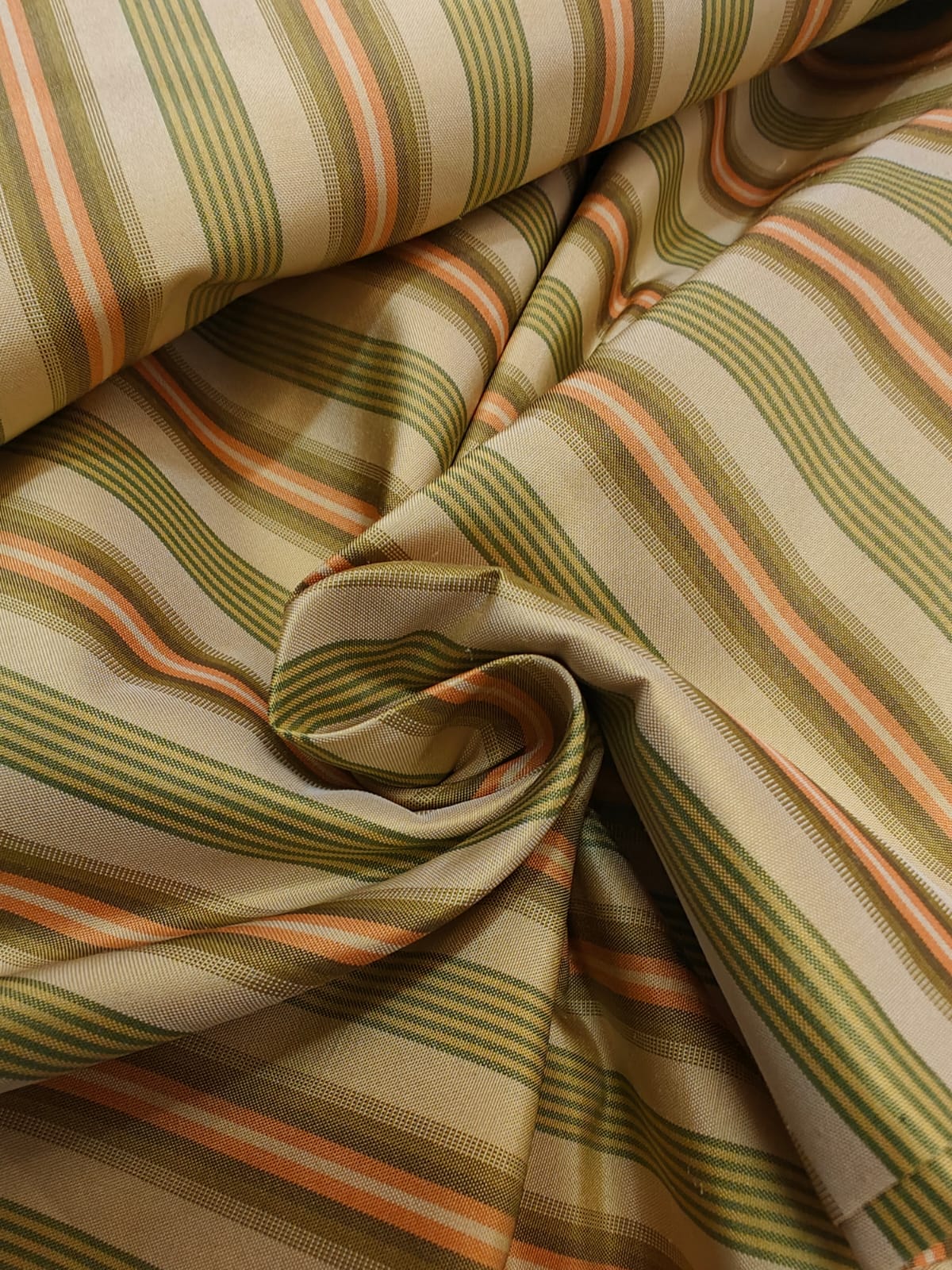 100% silk Taffeta stripes in golden green,green and peachy orange TAFS184