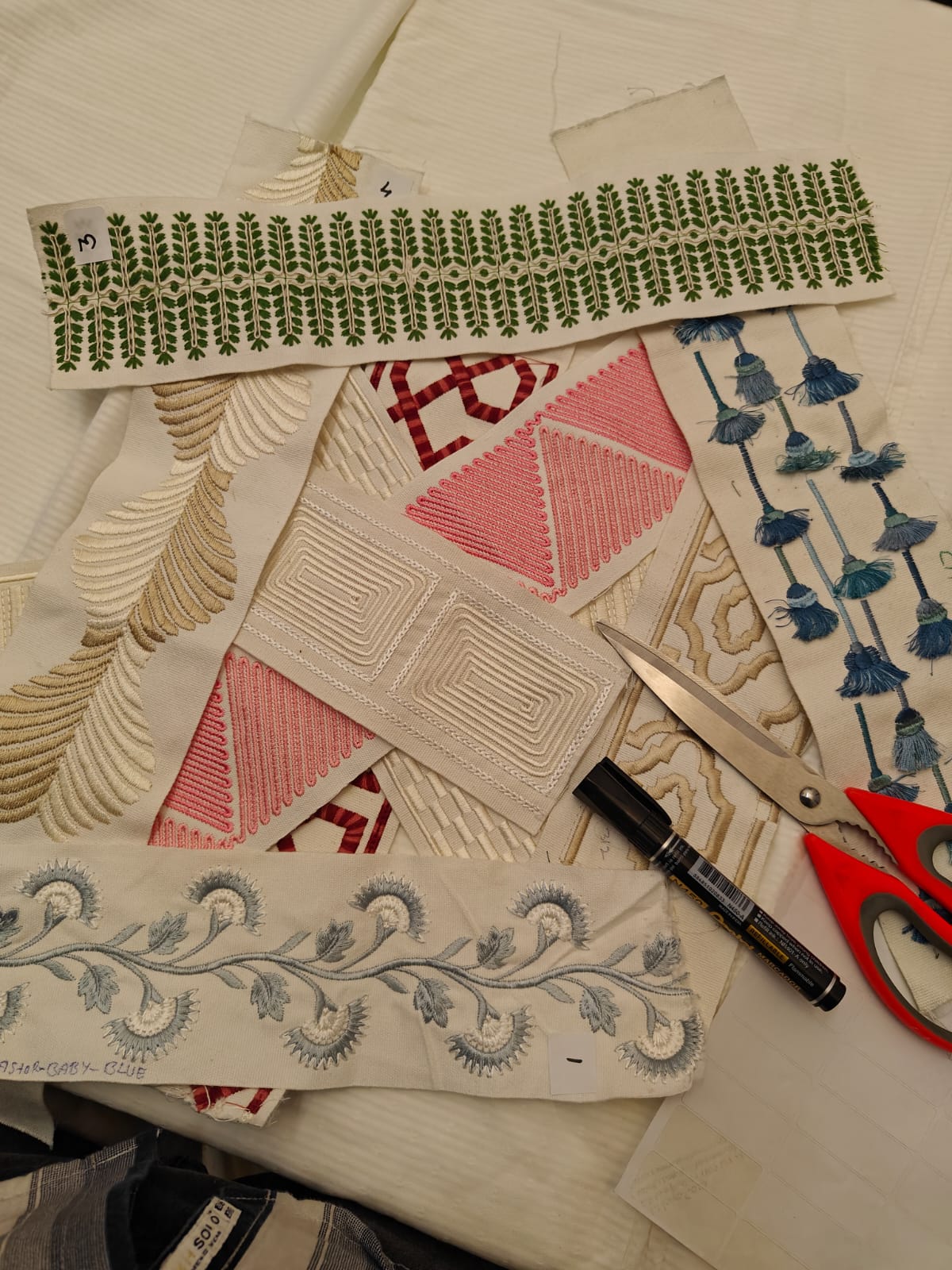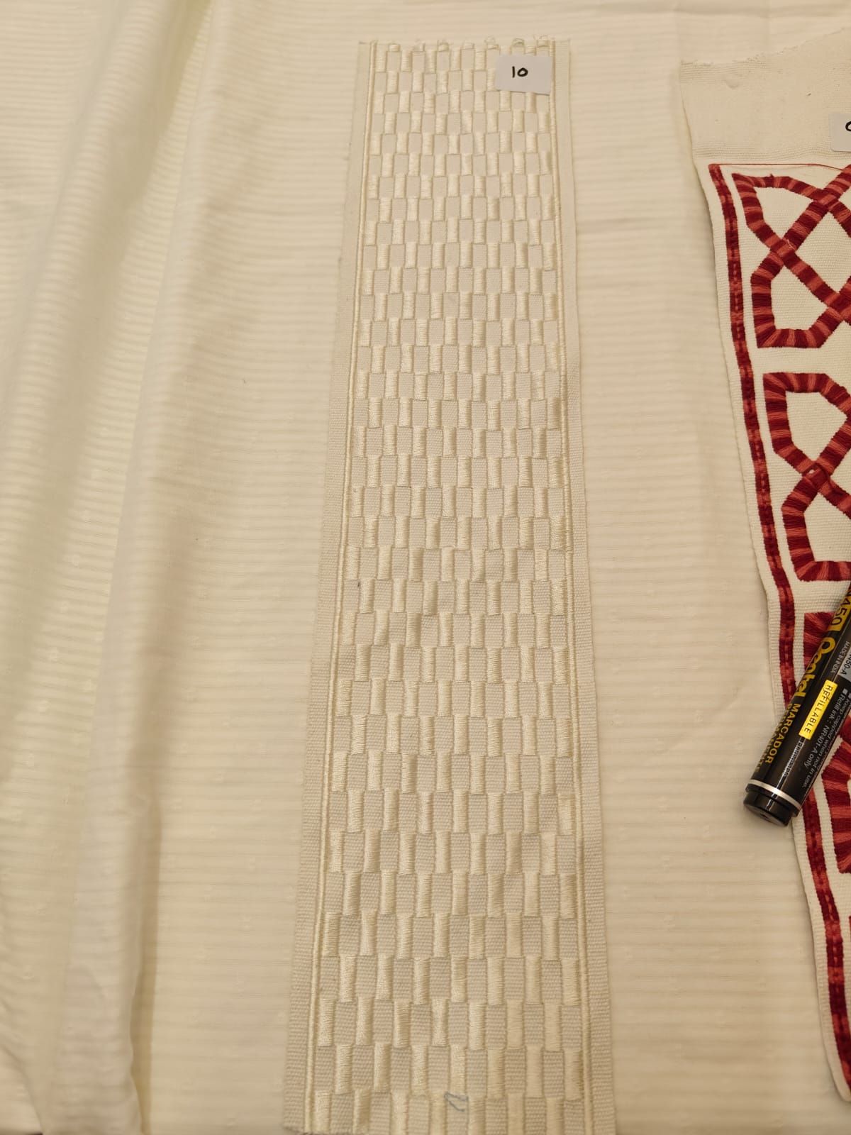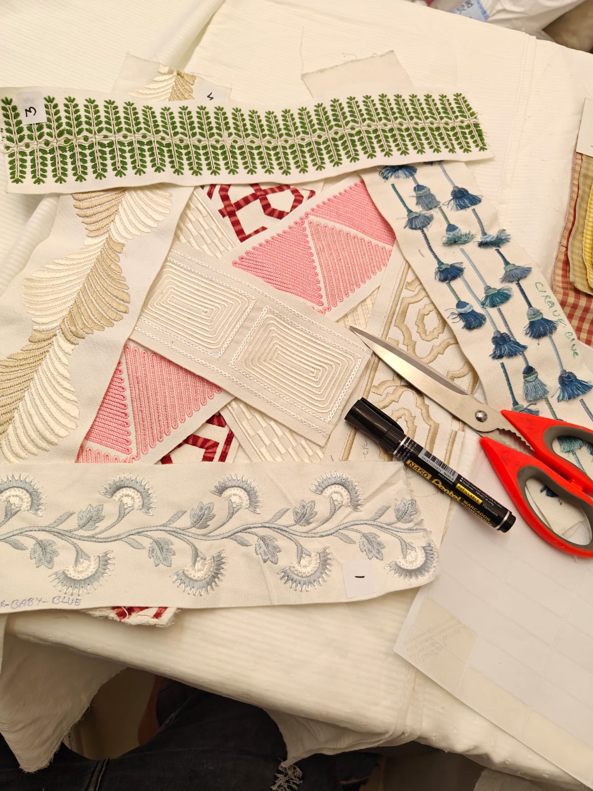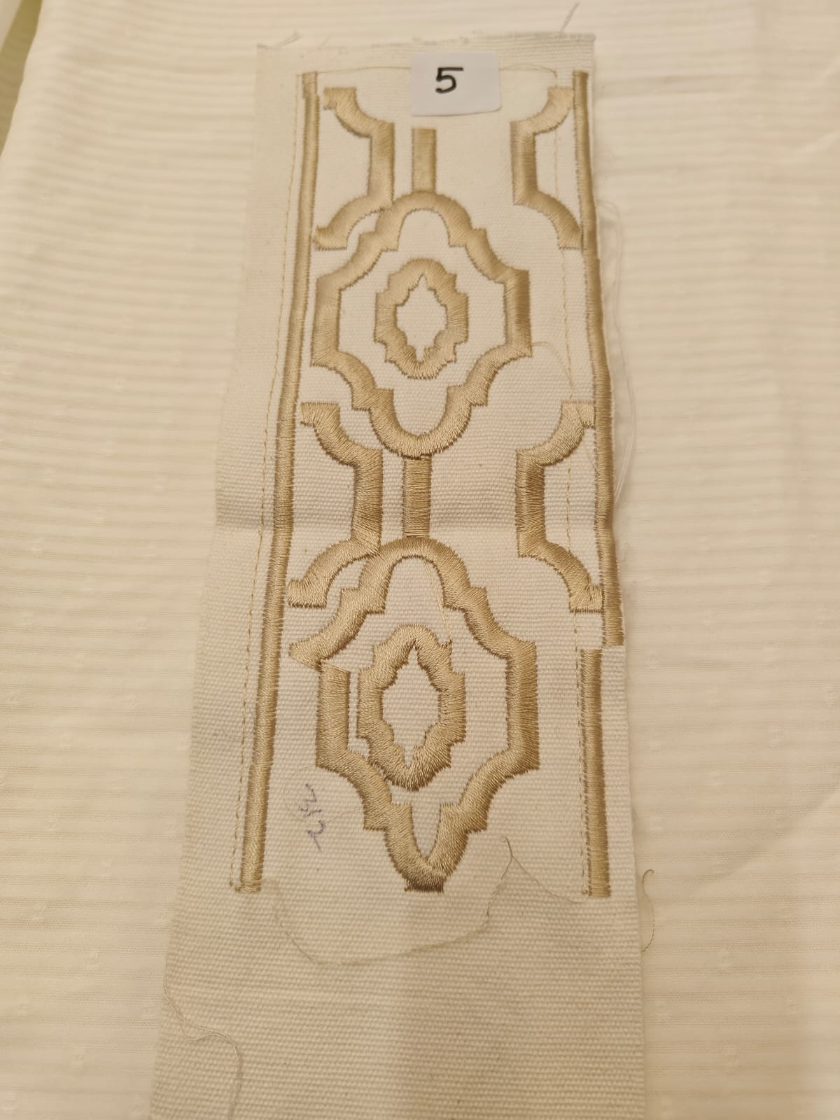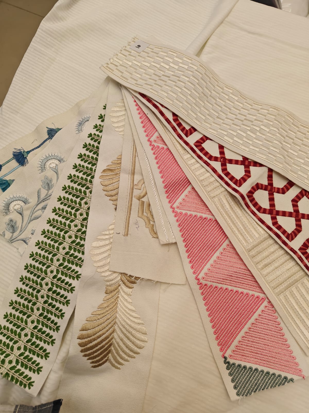 Borders in garments and furnishings are decorative elements applied to the edges, providing structure, style, and visual interest.