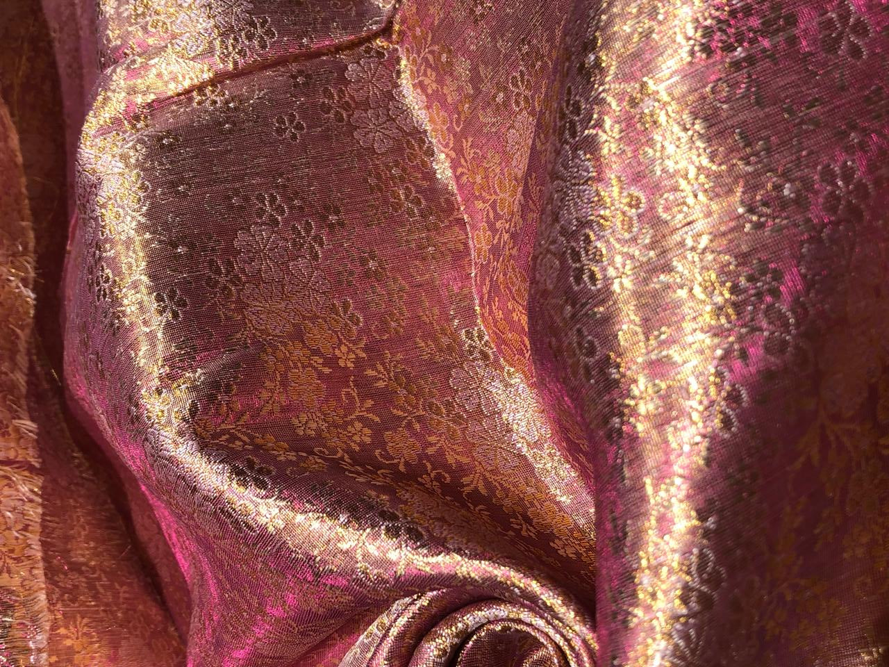 Silk Brocade fabric 44" two tone pink x gold floral jacquard BRO1046[3]