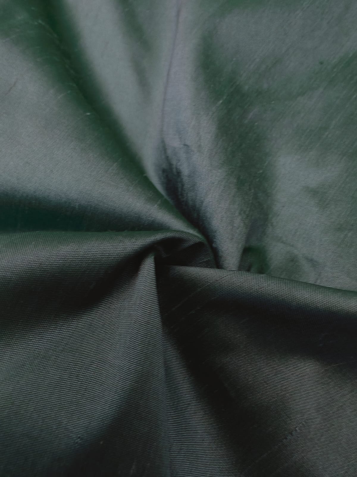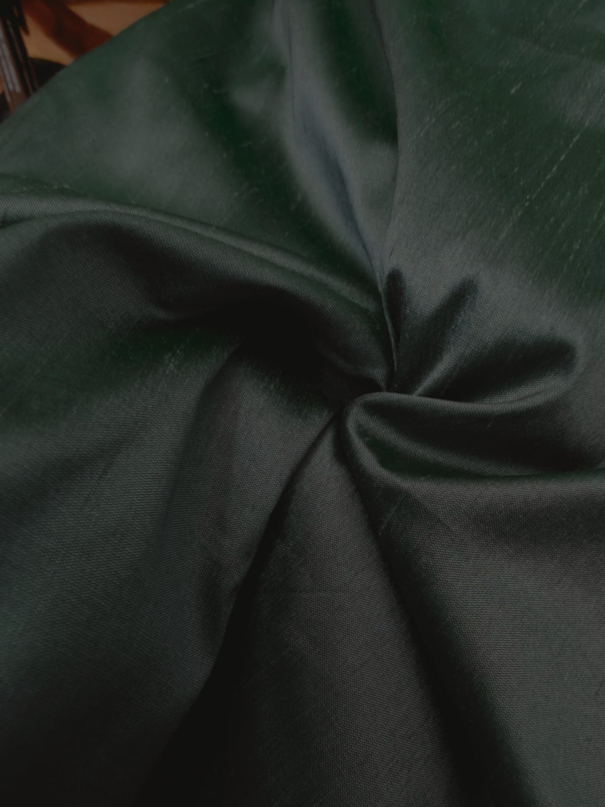 Dupioni (also referred to as Douppioni or Dupion) is a plain weave crisp type of silk fabric, produced by using fine thread in the warp and uneven thread reeled from two or more entangled cocoons in the weft. This creates tightly-woven yardage with a highly-lustrous surface. It is sometimes confused with 'shantung' or 'raw silk' which is usually lighter in weight and has a finer weave than dupion.