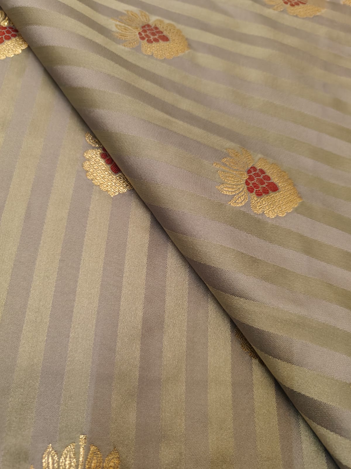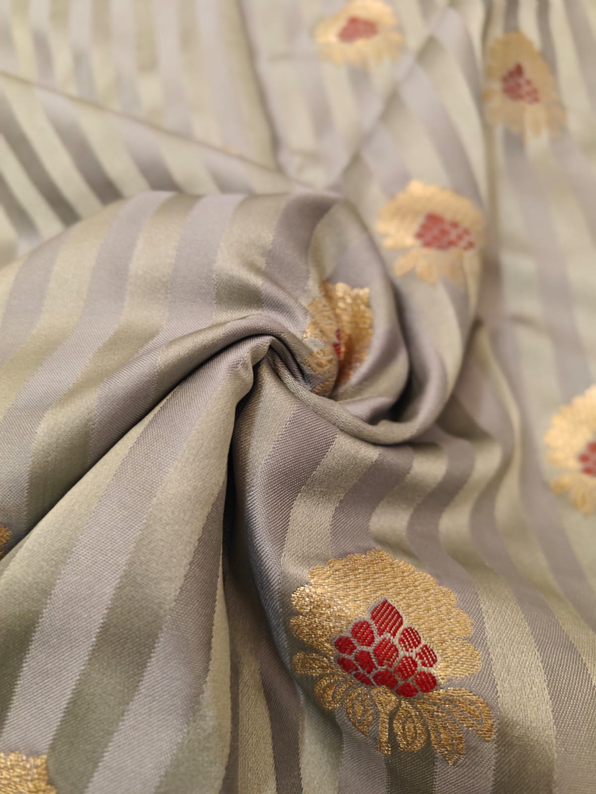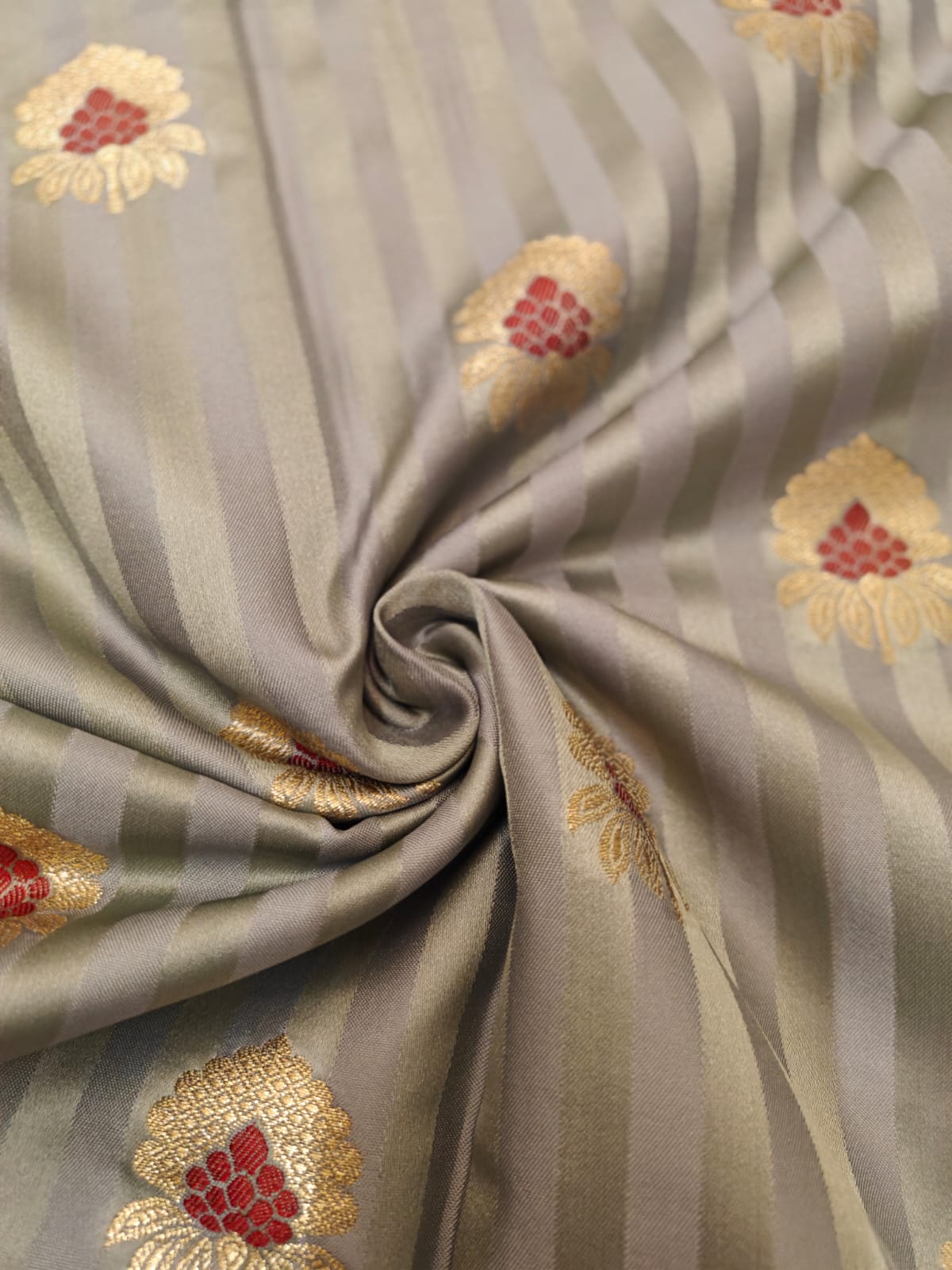 As luxurious as it seems, the art of brocade has transcended from the age old era of opulence and royalty. Conceptualized as a naksha (design) on paper first, the nakshabandha (designer) translates the design on Banarasi silk weaves, using fine gauze or gold or silver threads with immaculate precision into patterns that range from artistic elaboration to minimalistic intricacy. Romance with royalty in your outfit daily.