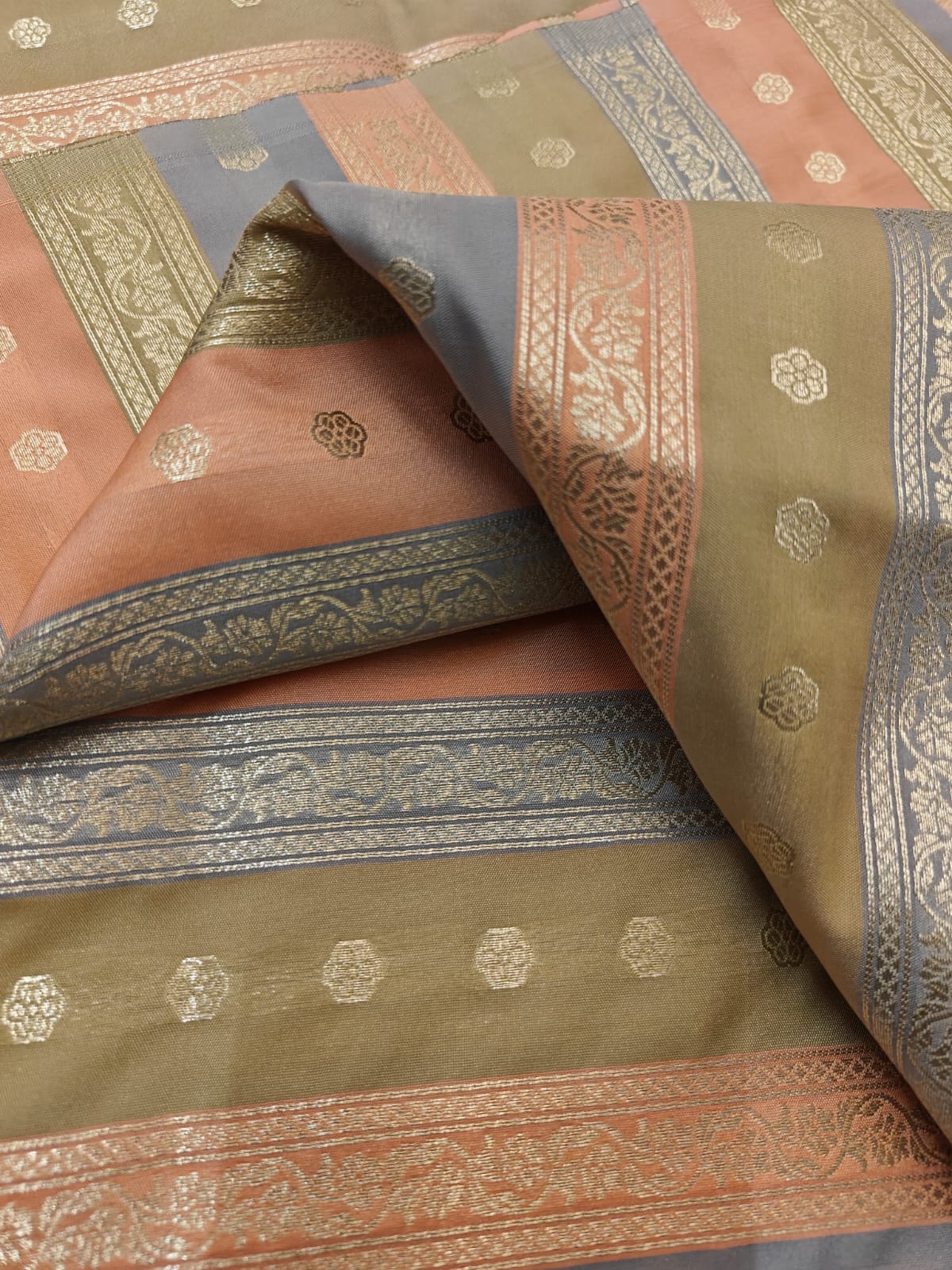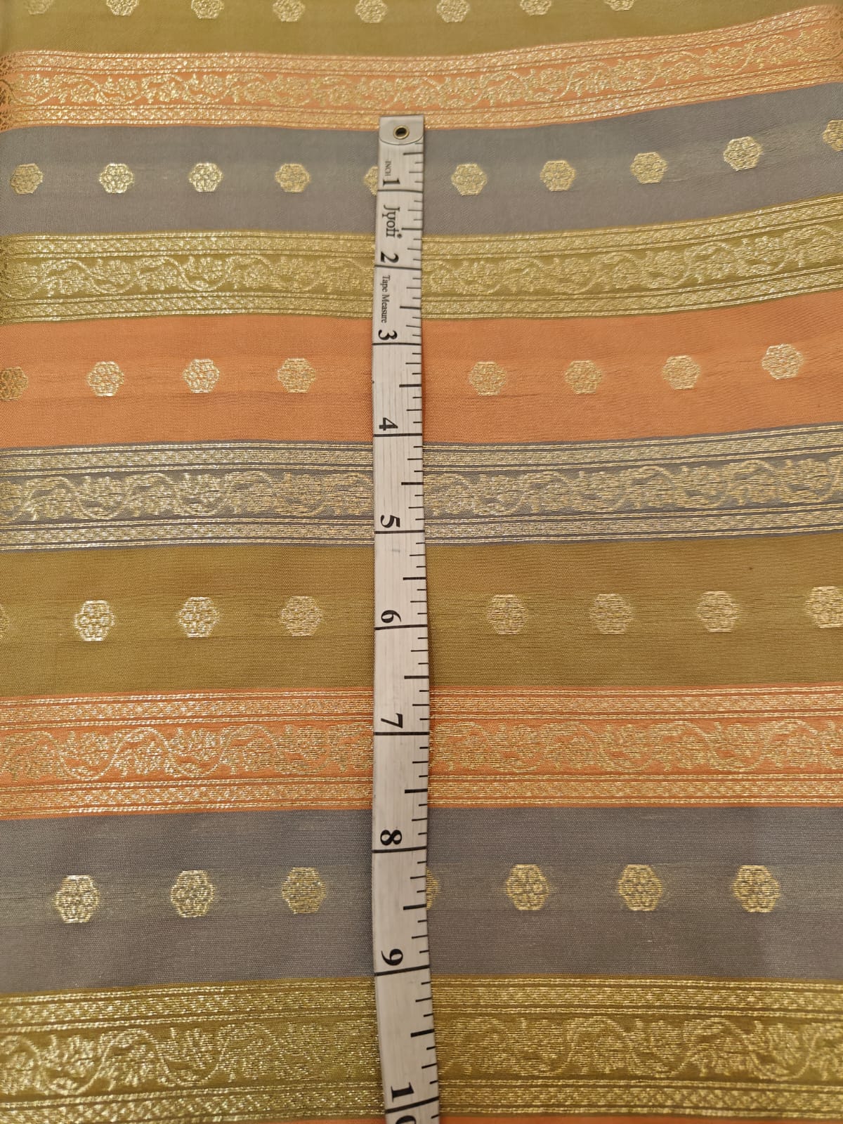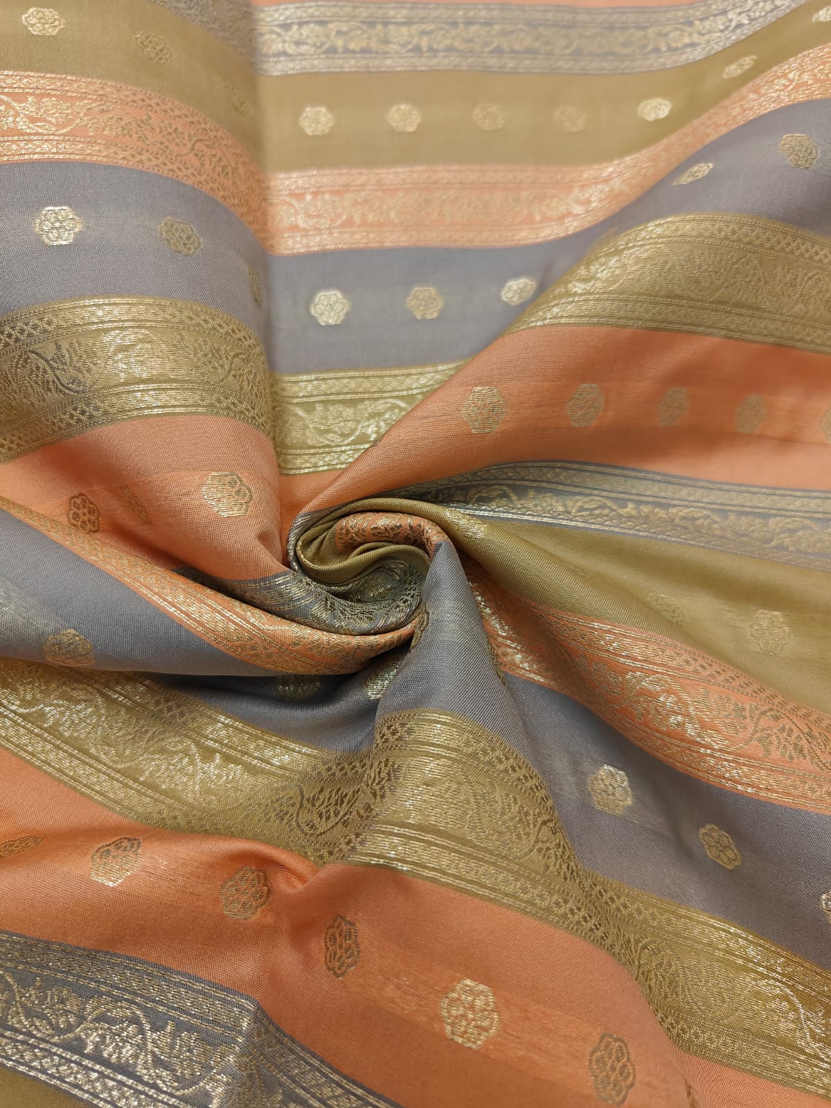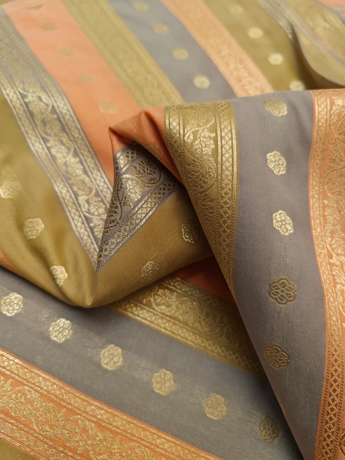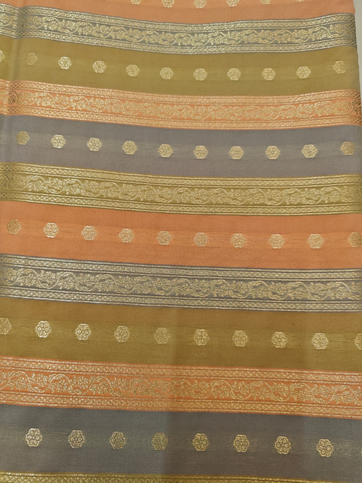 Silk Satin Brocade stripes of different designs in metallic gold jacquard available in 2 combinations pink,purple ,red and peach and silver grey BRO1184[1/2]