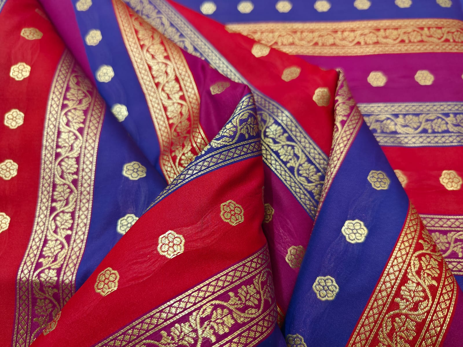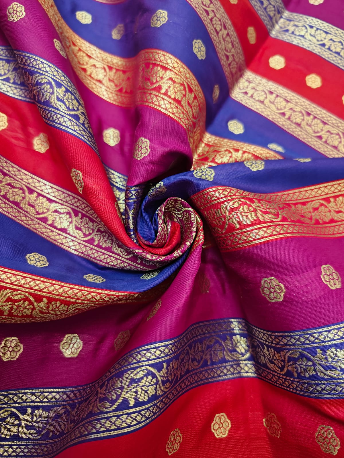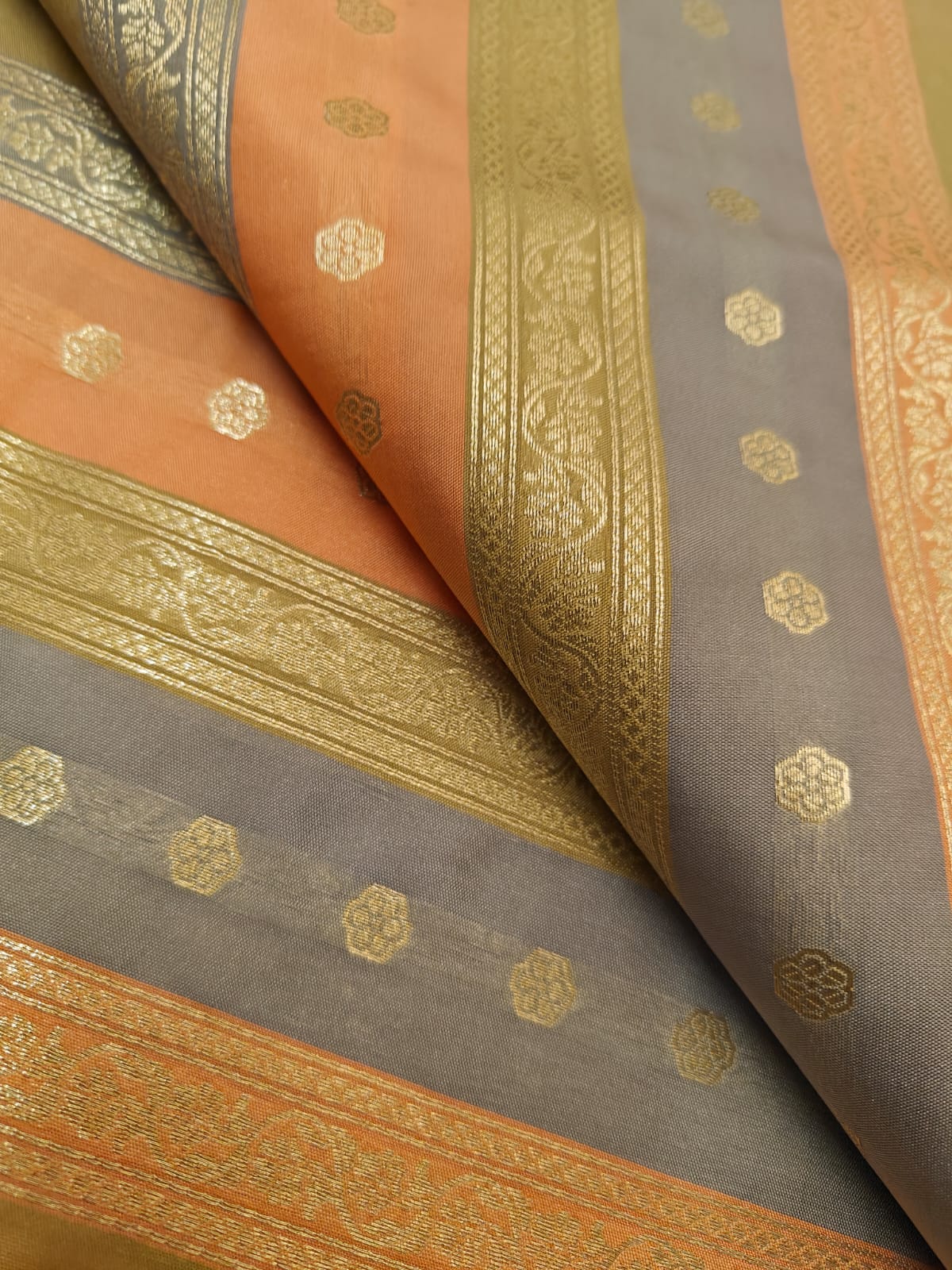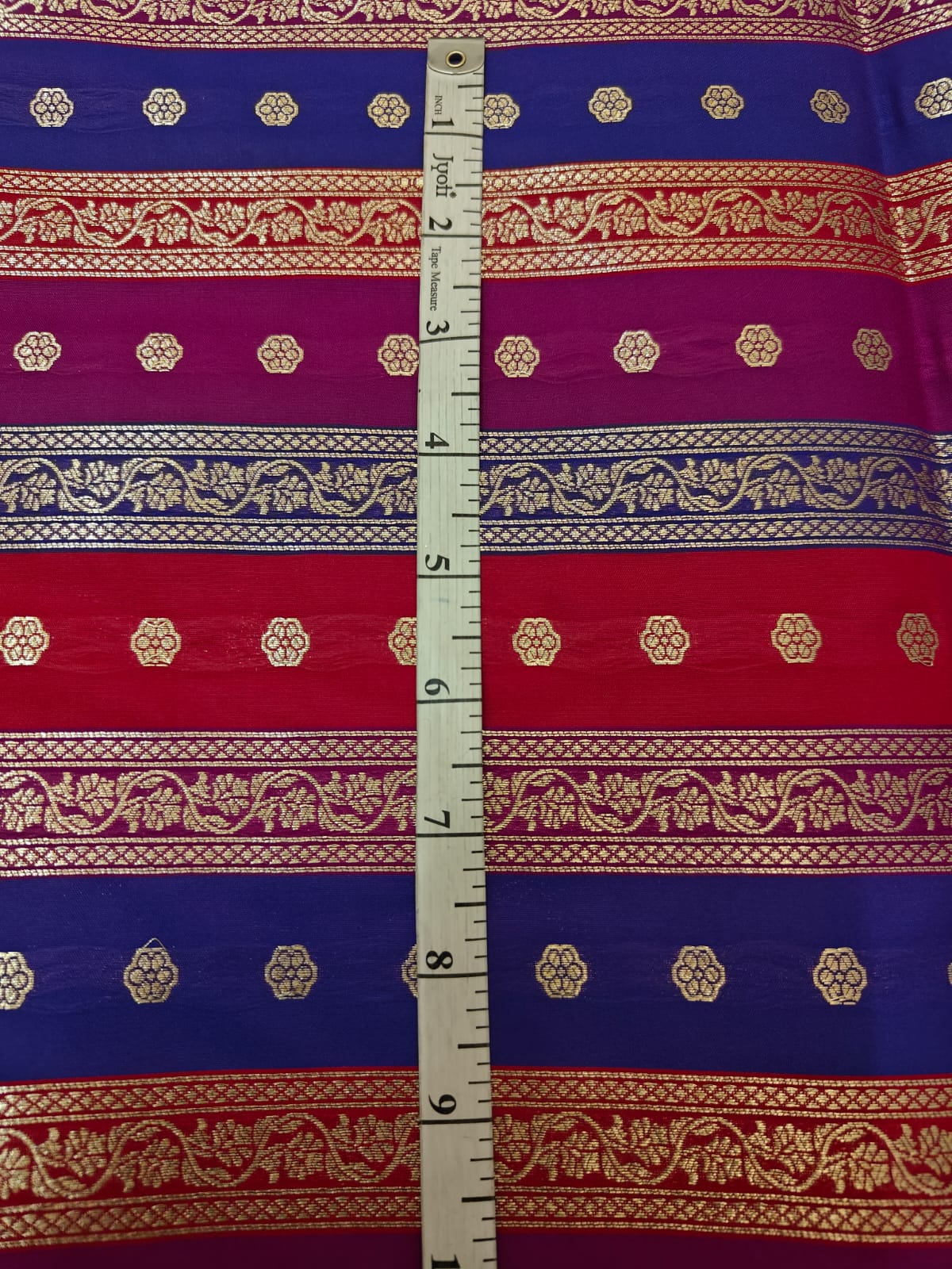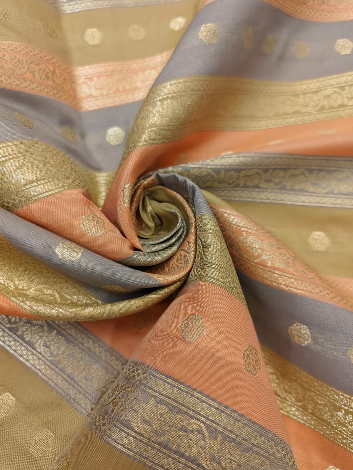 Silk Satin Brocade stripes of different designs in metallic gold jacquard available in 2 combinations pink,purple ,red and peach and silver grey BRO1184[1/2]