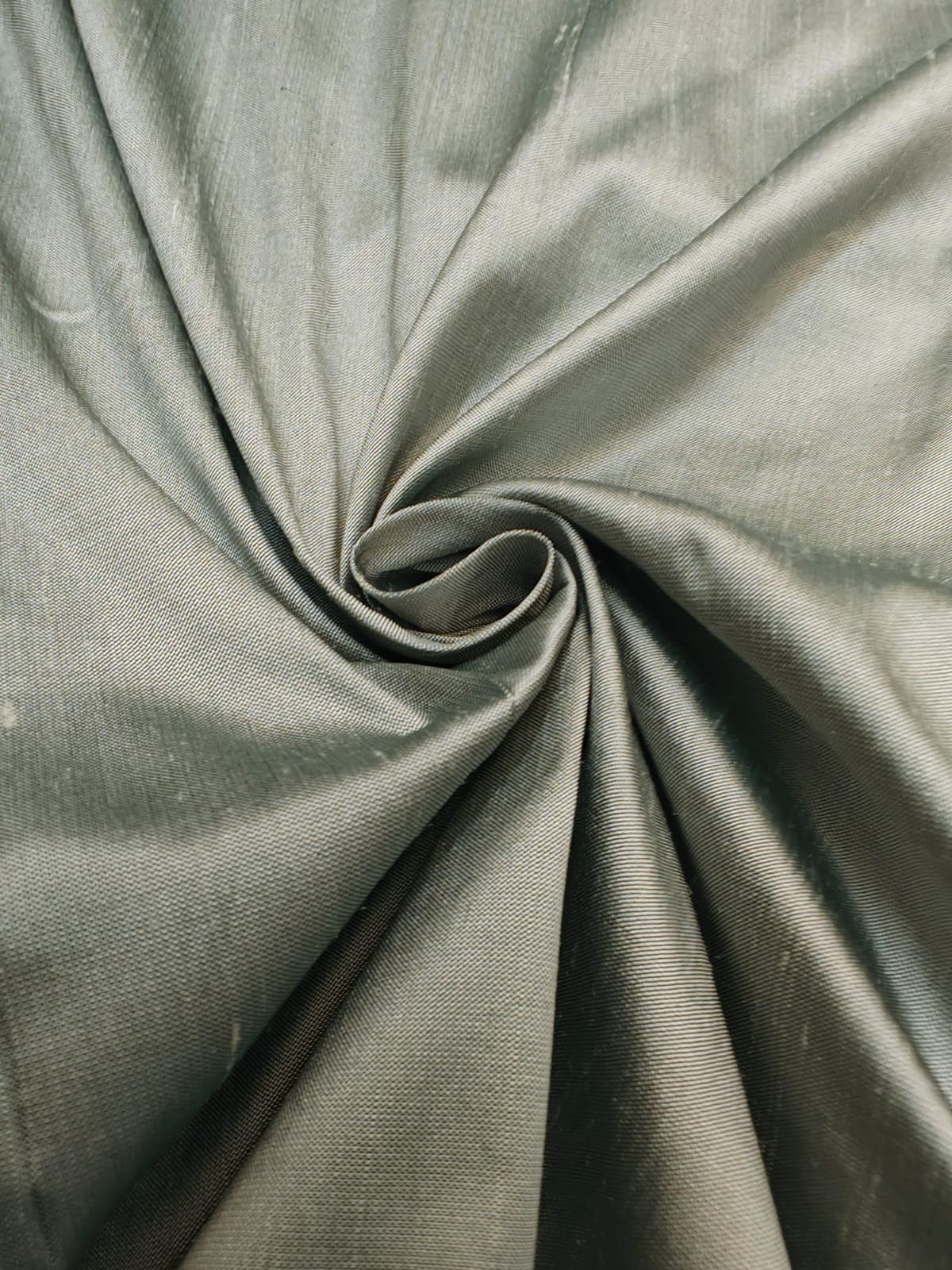 Dupioni (also referred to as Douppioni or Dupion) is a plain weave crisp type of silk fabric, produced by using fine thread in the warp and uneven thread reeled from two or more entangled cocoons in the weft. This creates tightly-woven yardage with a highly-lustrous surface. It is sometimes confused with 'shantung' or 'raw silk' which is usually lighter in weight and has a finer weave than dupion.