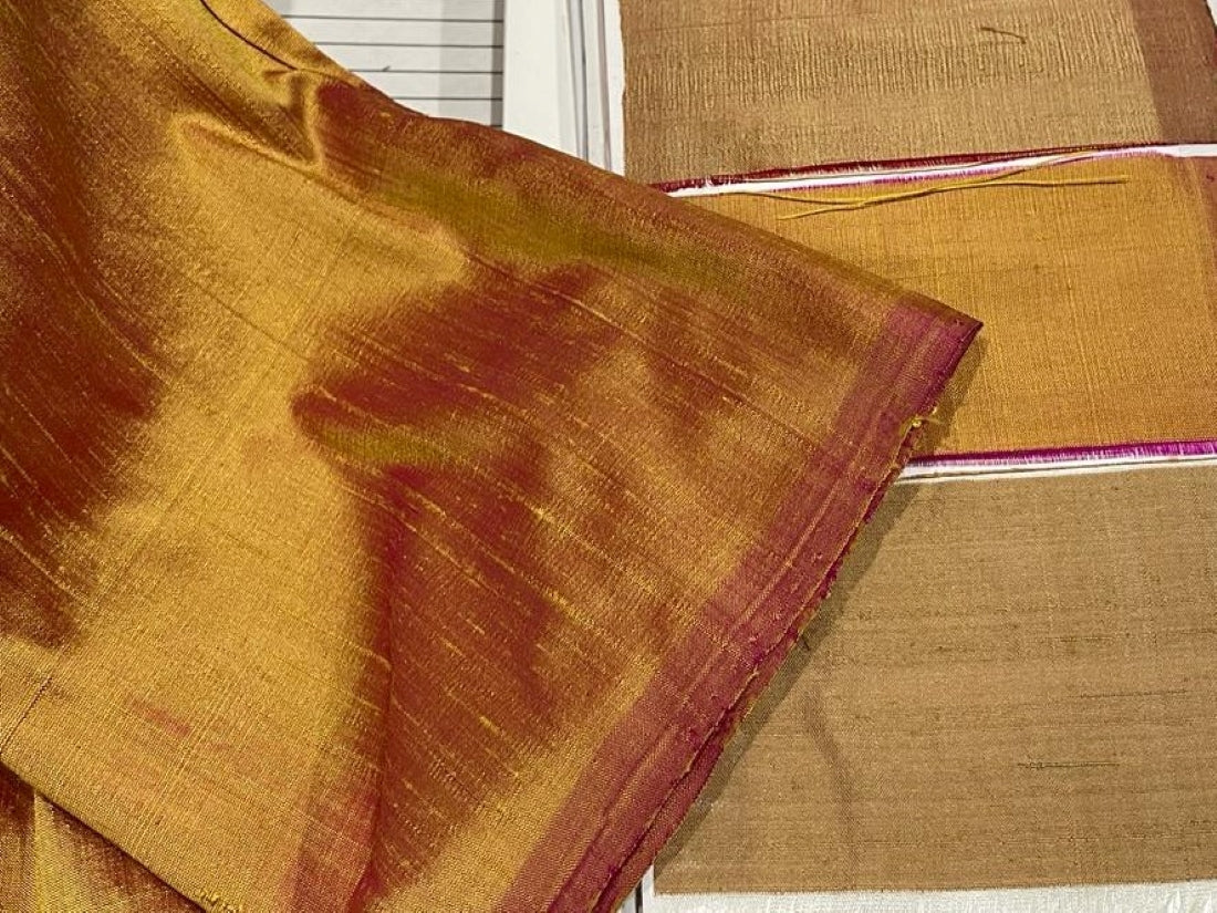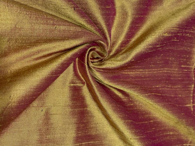 100% pure silk dupioni golden yellow x pink 108" wide with slubs fabric