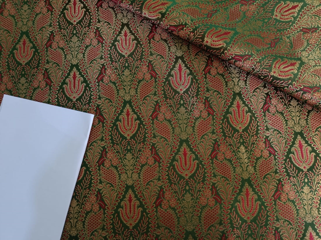 | Usage | Brocade fabrics are mostly for upholstery and draperies. They are also used for evening and formal clothing, for vestments, as well as for historical costumes and accessories. In India, Banarasi Brocade Fabrics are extensively used for women's fashion in the form of Sarees, Dress Materials and Dupattas. |