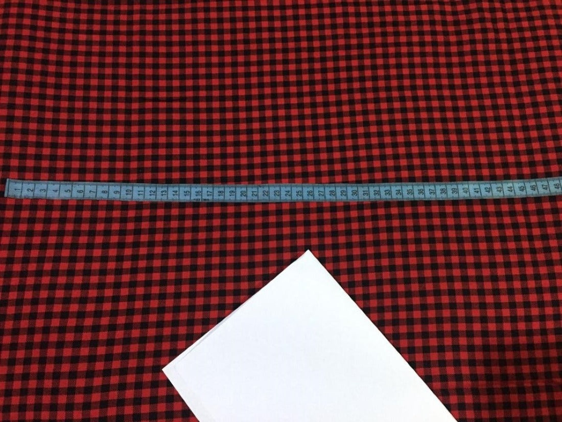 COTTON RAYON BLACK WITH RED PLAIDS 58" wide