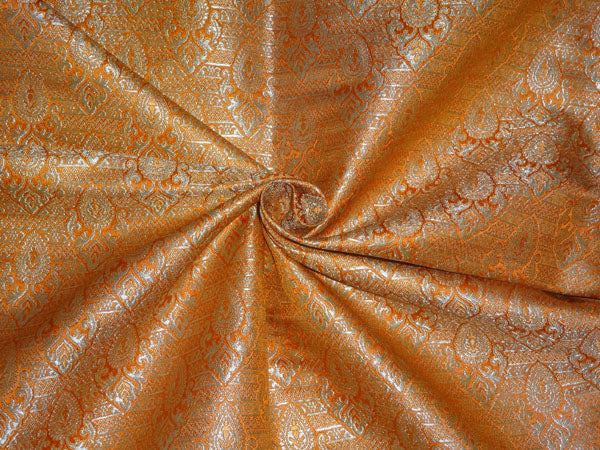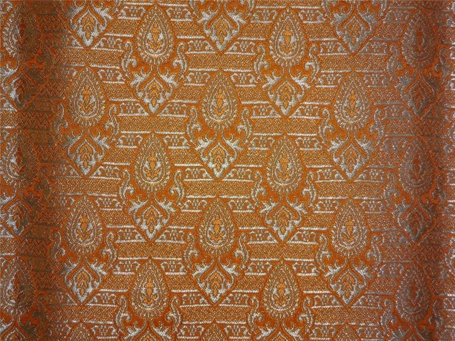 Heavy Silk Brocade Fabric Burnt Orange x Metallic Gold Color 36" WIDE BRO518[4]