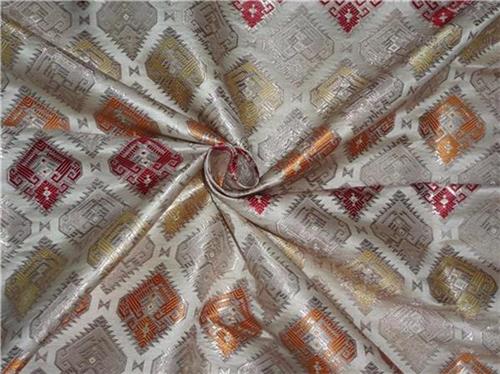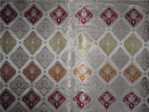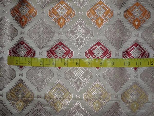 SILK BROCADE FABRIC CREAM,WINE YELLOW & METALLIC GOLD MOTIF COLOR 36" WIDE BRO531[5]