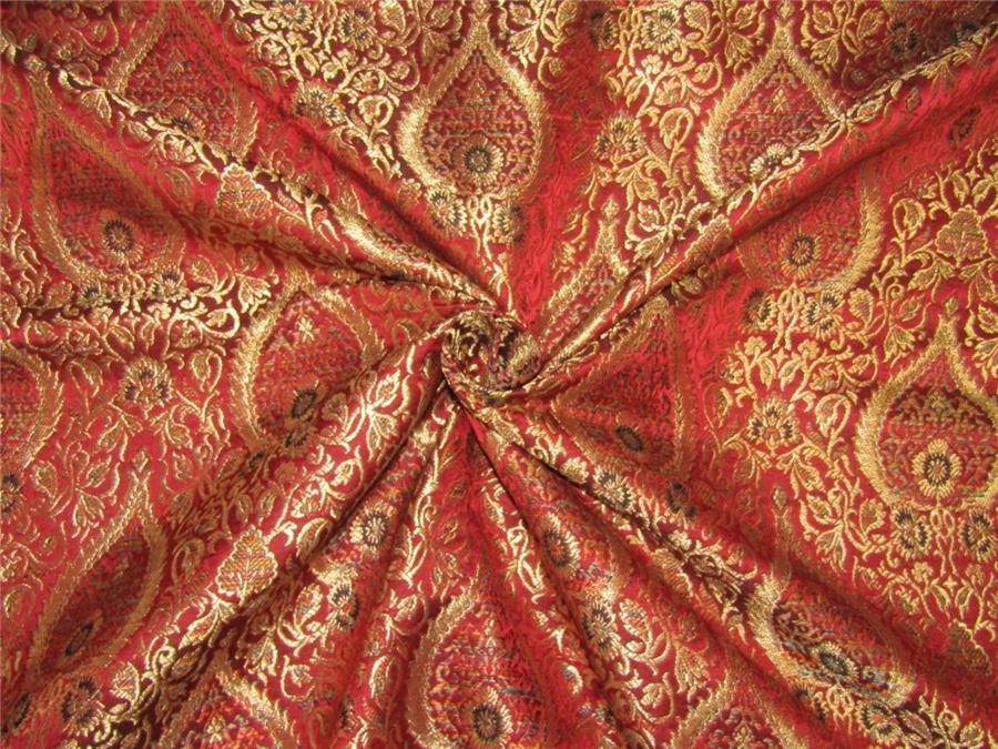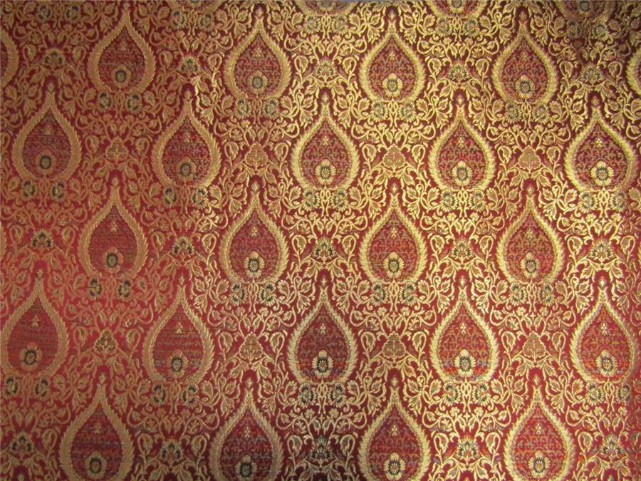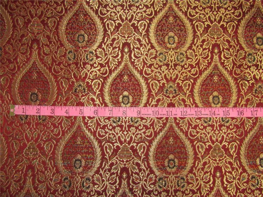 Heavy Silk Brocade Fabric dark red /multi x color Metallic Gold 36"