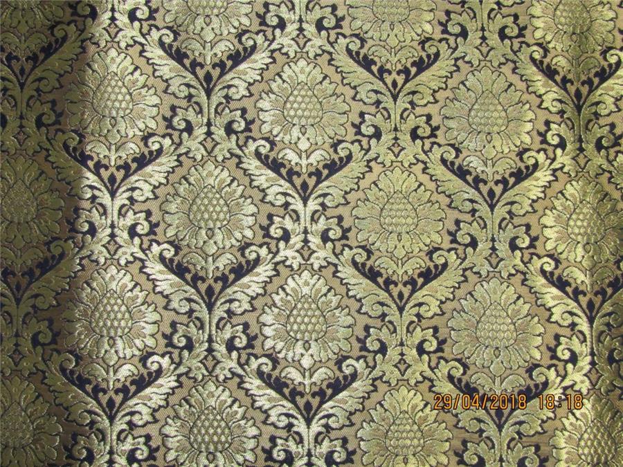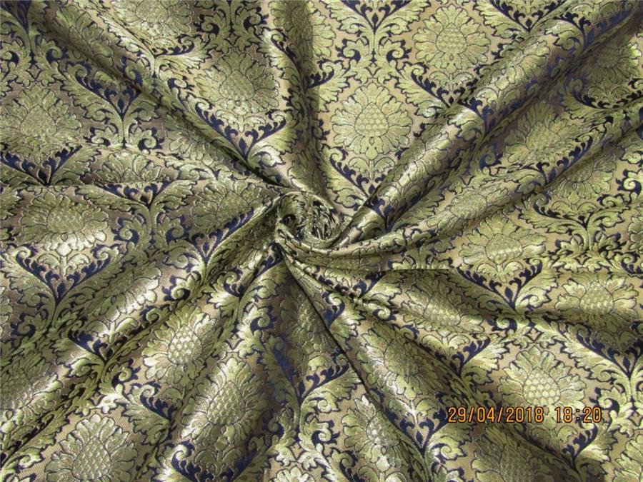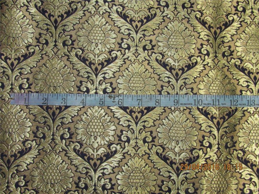 Heavy Silk Brocade Fabric navy blue x Metallic Gold color 36"