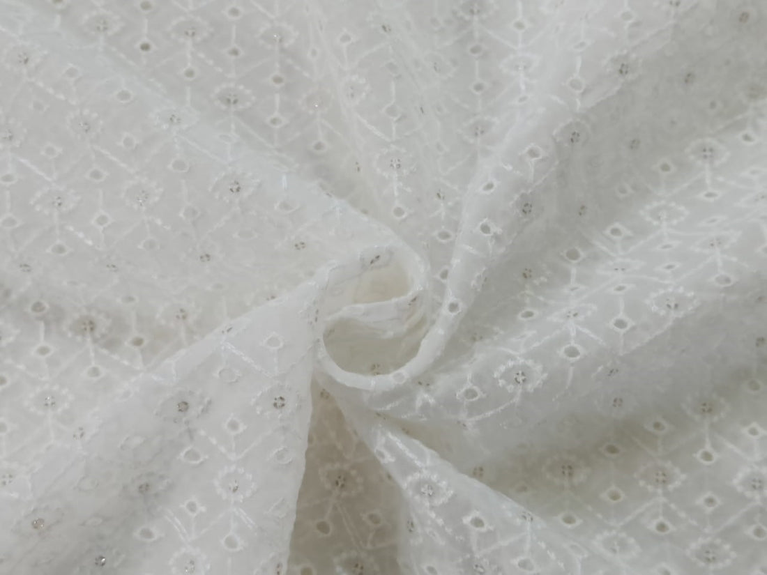 A very sheer, crisp fabric that is strong and durable with a firm hand and a flat, smooth texture. The open weave is naturally stiff without the addition of any "stiffeners", so great for specific use in wedding garments, petticoats, costuming, lampshade work, interfacing, etc. Readily accepts and reflects strong, brilliant colors.