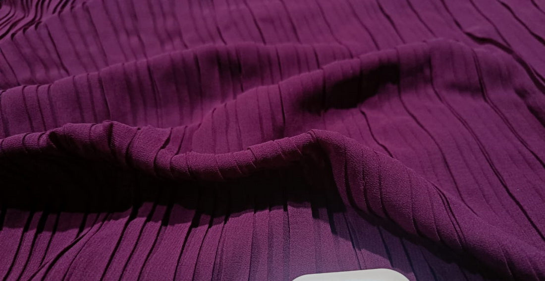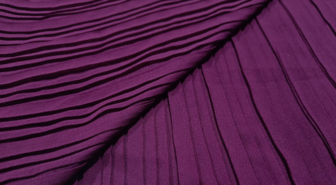 Polyester fabrics provide an enduring pleat, whilst silk satin, organza, Georgette and taffeta fabrics make gorgeous pleated pieces - do note some silk qualities can lose some of their pleating hold when dry-cleaned.