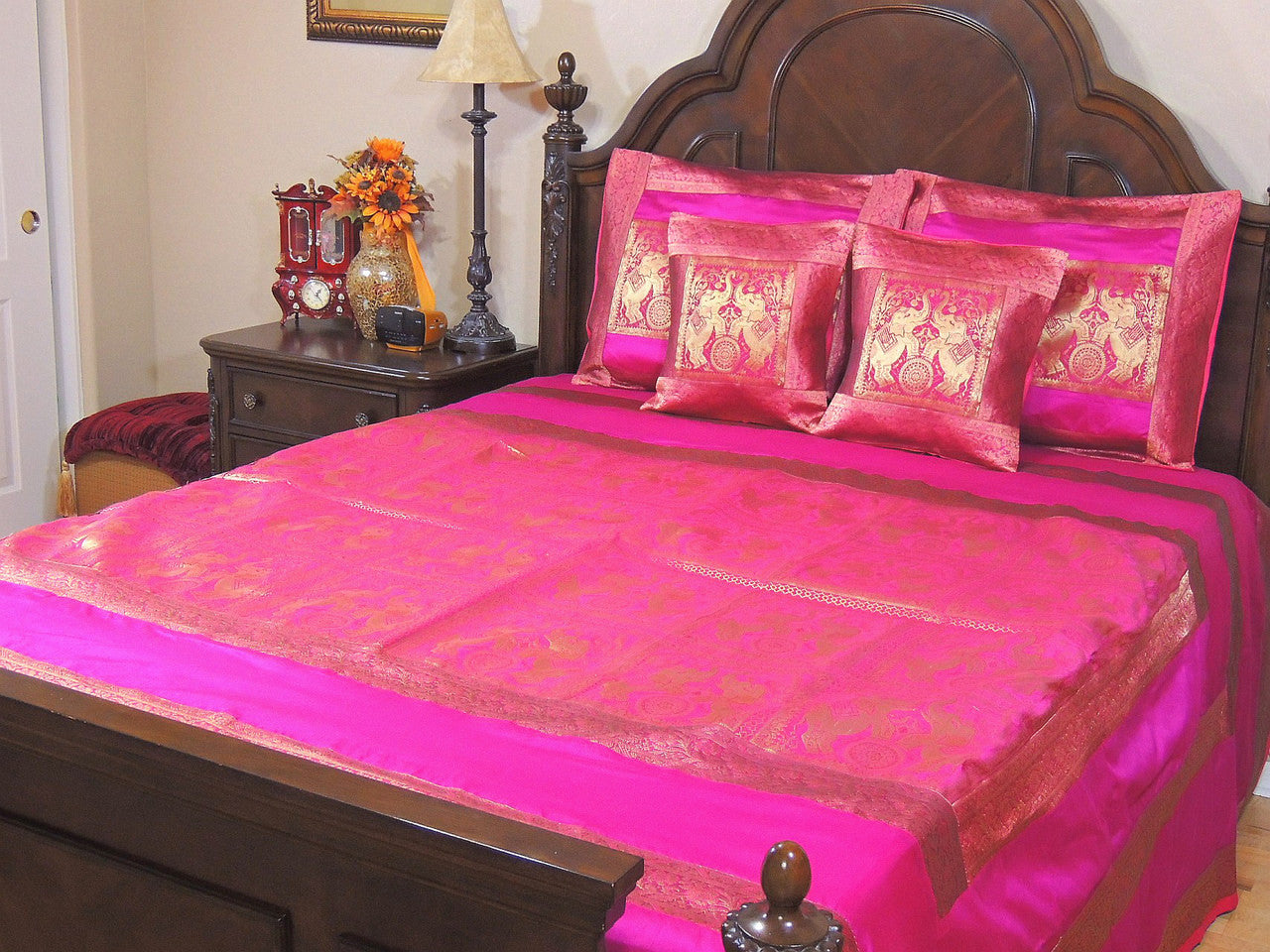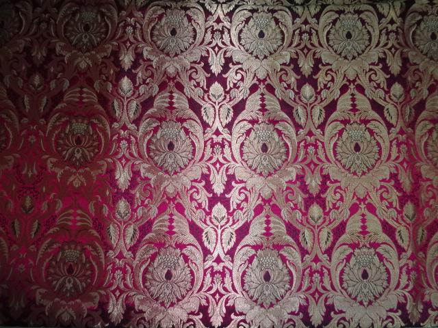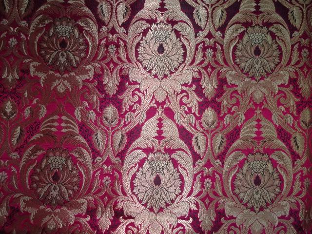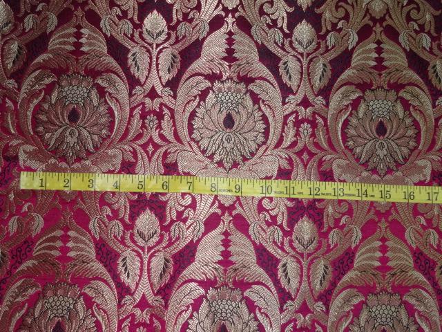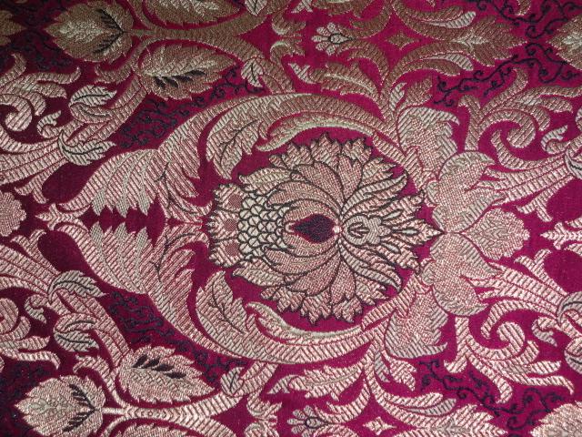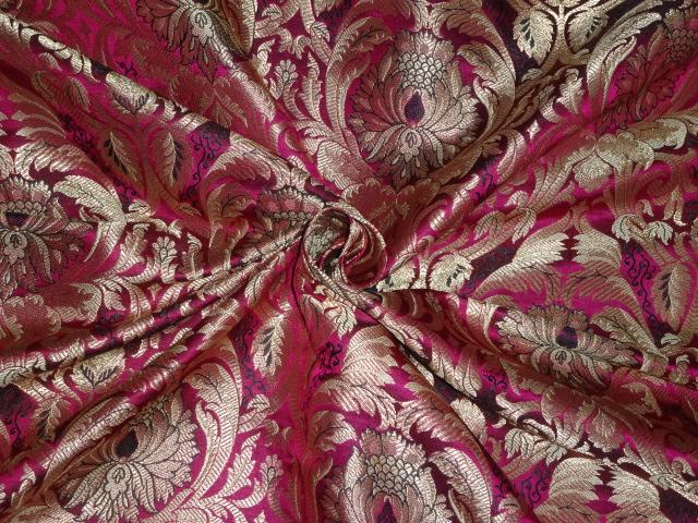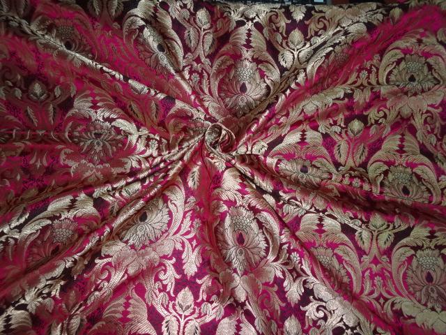 SILK BROCADE FABRIC GOLD,METALLIC GOLD & LIPSTICK PINK