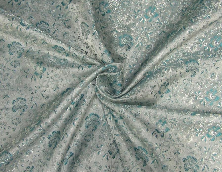 Silk Brocade fabric Silver & Green 44"BRO549[2]