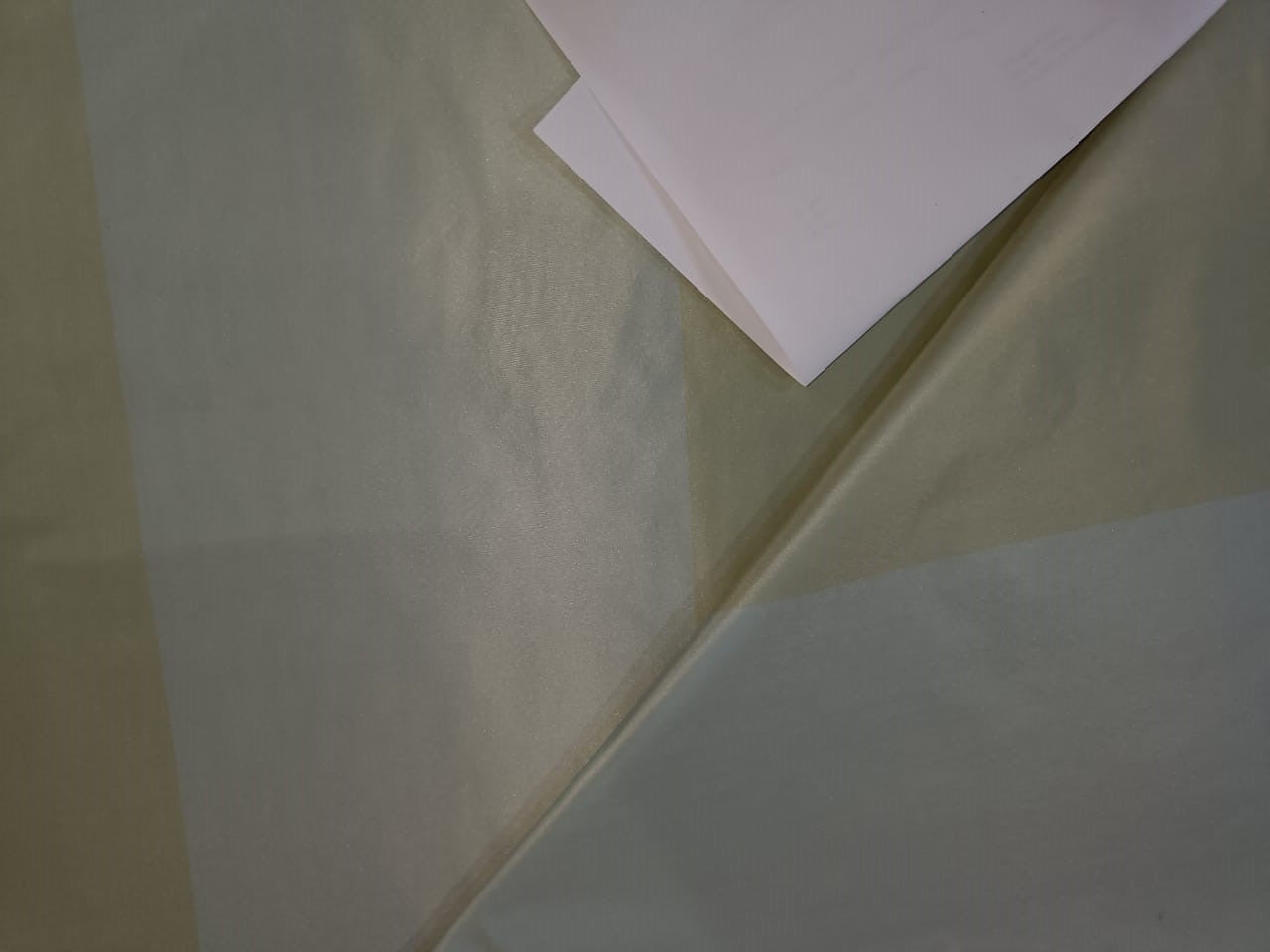 Silk Taffeta Fabric Very Light Blue & Olive stripes 54" wide Taf