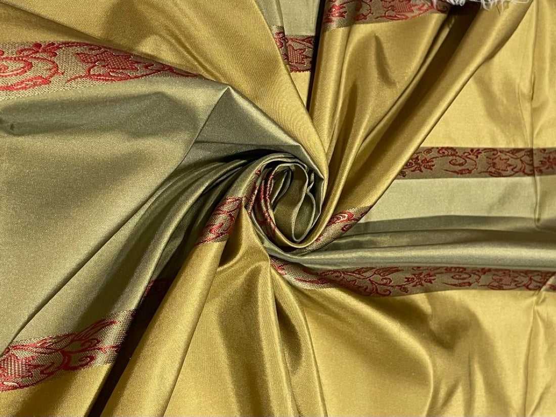Silk taffeta floral dobby fabric-dusty green,gold x satin stripe 54" wide TAF