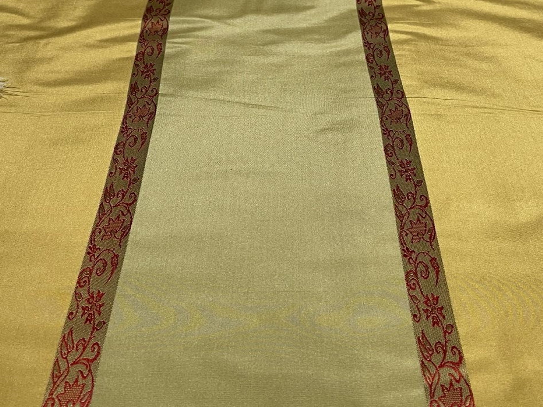 Silk taffeta floral dobby fabric-dusty green,gold x satin stripe 54" wide TAF#J11[3]