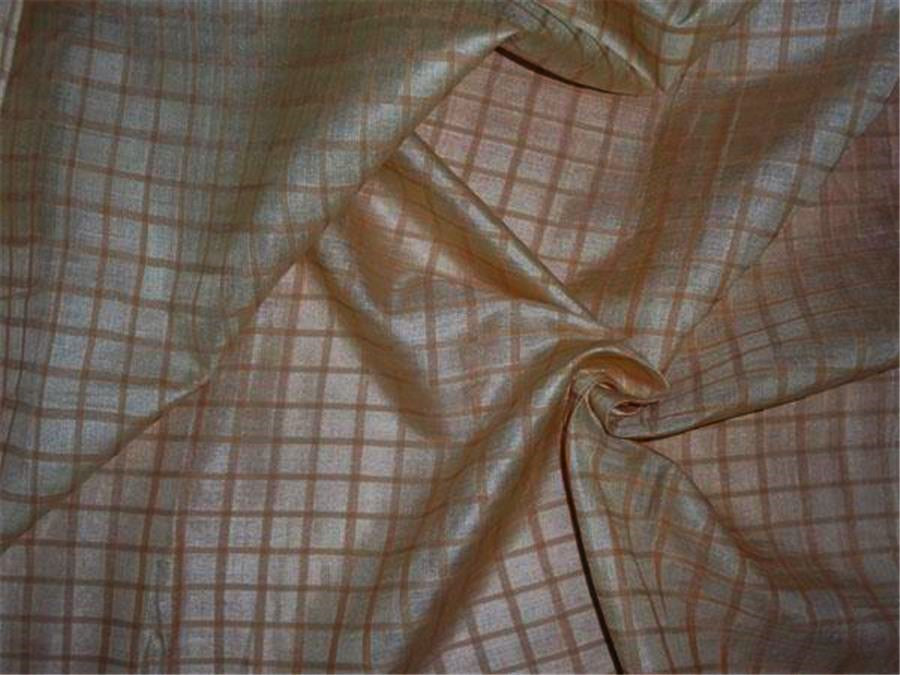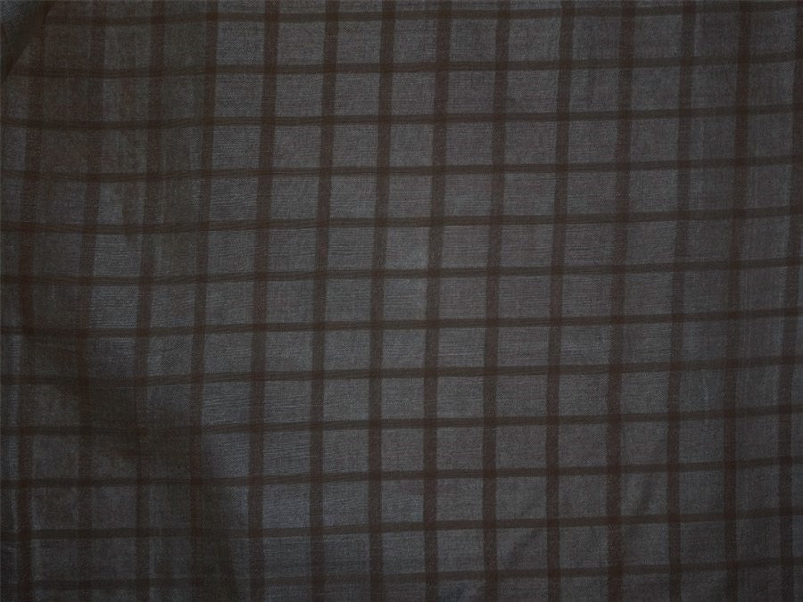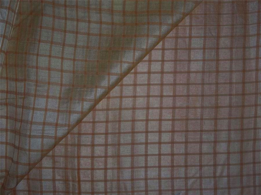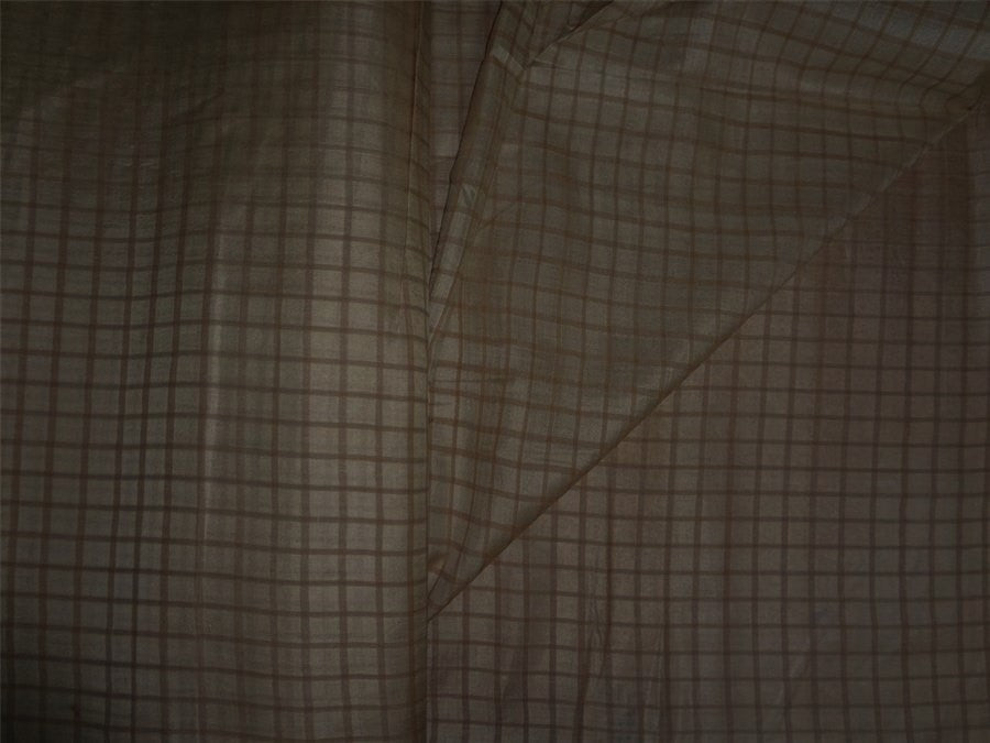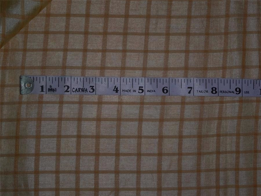 Tussar silk fabric with natural x light brown plaids 44" wide [6421]