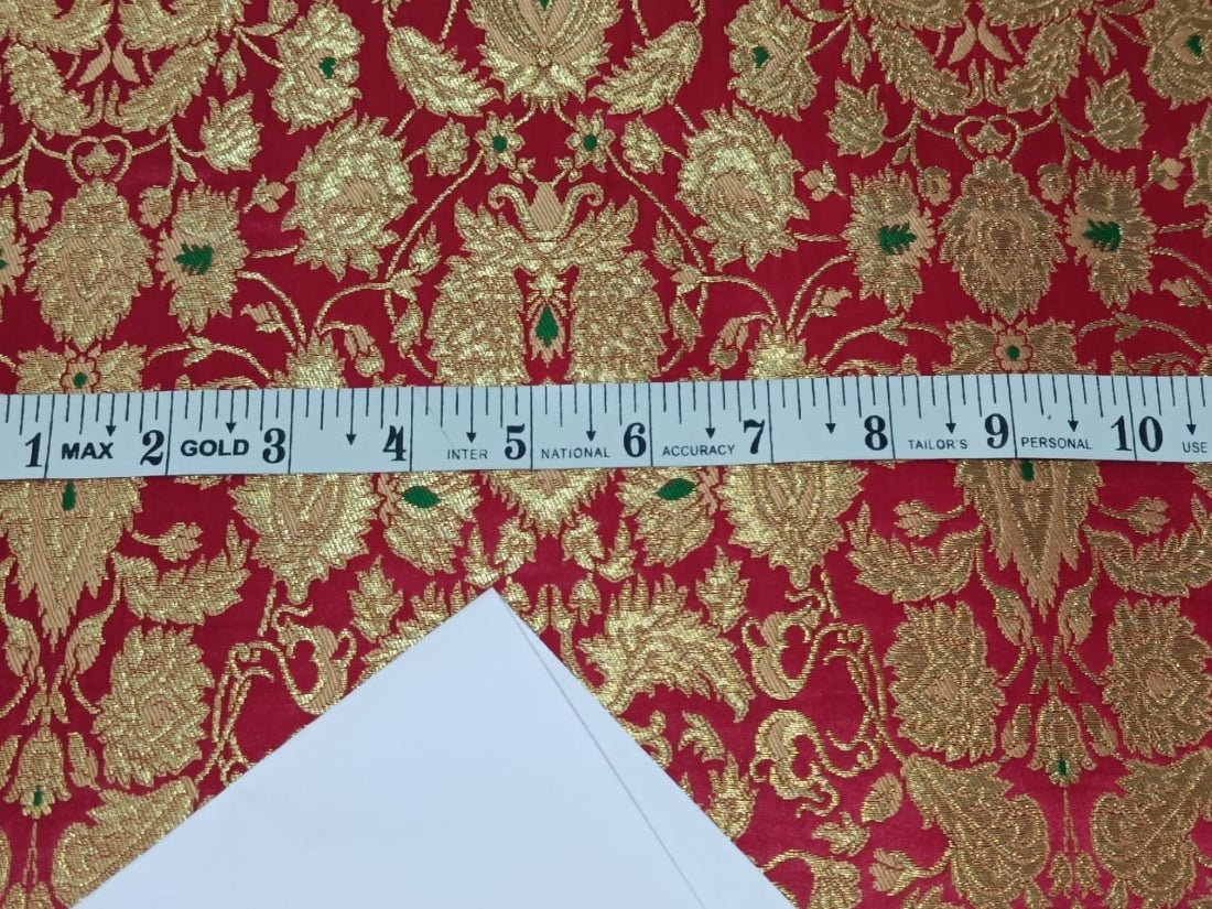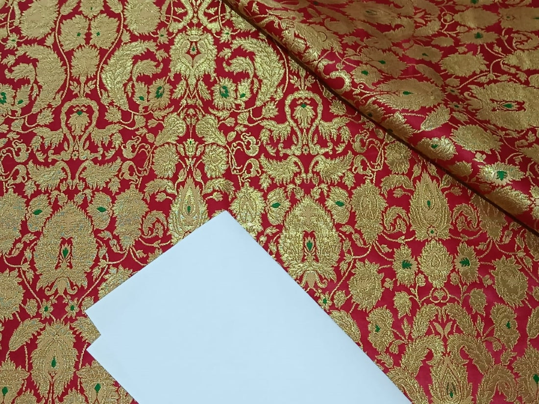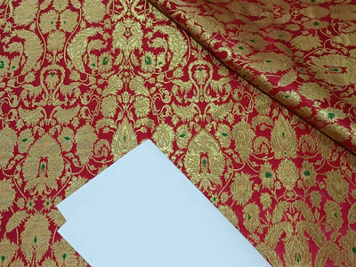 Heavy Silk Brocade KING KHAB fabric red and metallic gold BRO78[5]