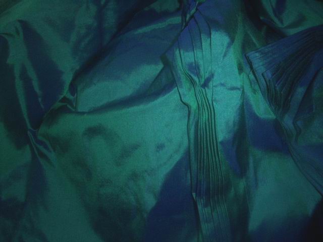 Dupioni (also referred to as Douppioni or Dupion) is a plain weave crisp type of silk fabric, produced by using fine thread in the warp and uneven thread reeled from two or more entangled cocoons in the weft. This creates tightly-woven yardage with a highly-lustrous surface.It is sometimes confused with 'shantung' or 'raw silk' which is usually lighter in weight and has a finer weave than dupion.