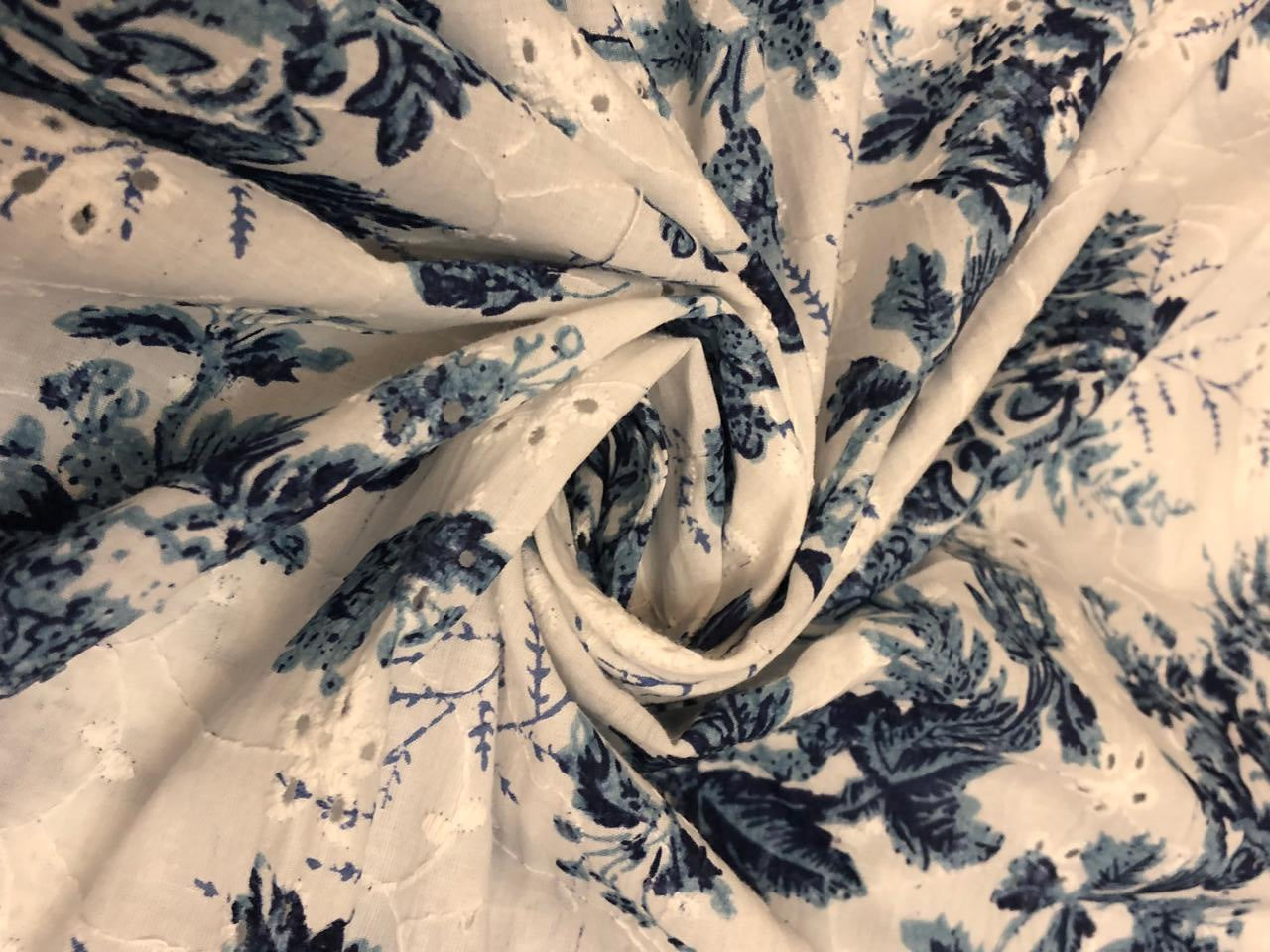100% Cotton printed and chikan embroidery fabric 58 inches wide 147 cms,chikan is a traditional embroidery style from Lucknow, India.