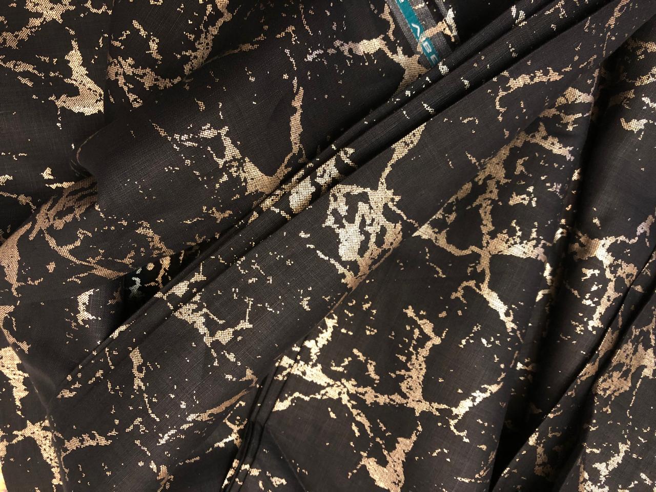 100% HEMP BLACK  color fabric with silver foil print 58" wide [18864]