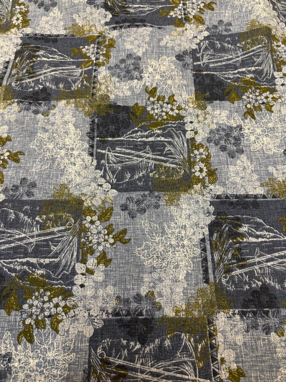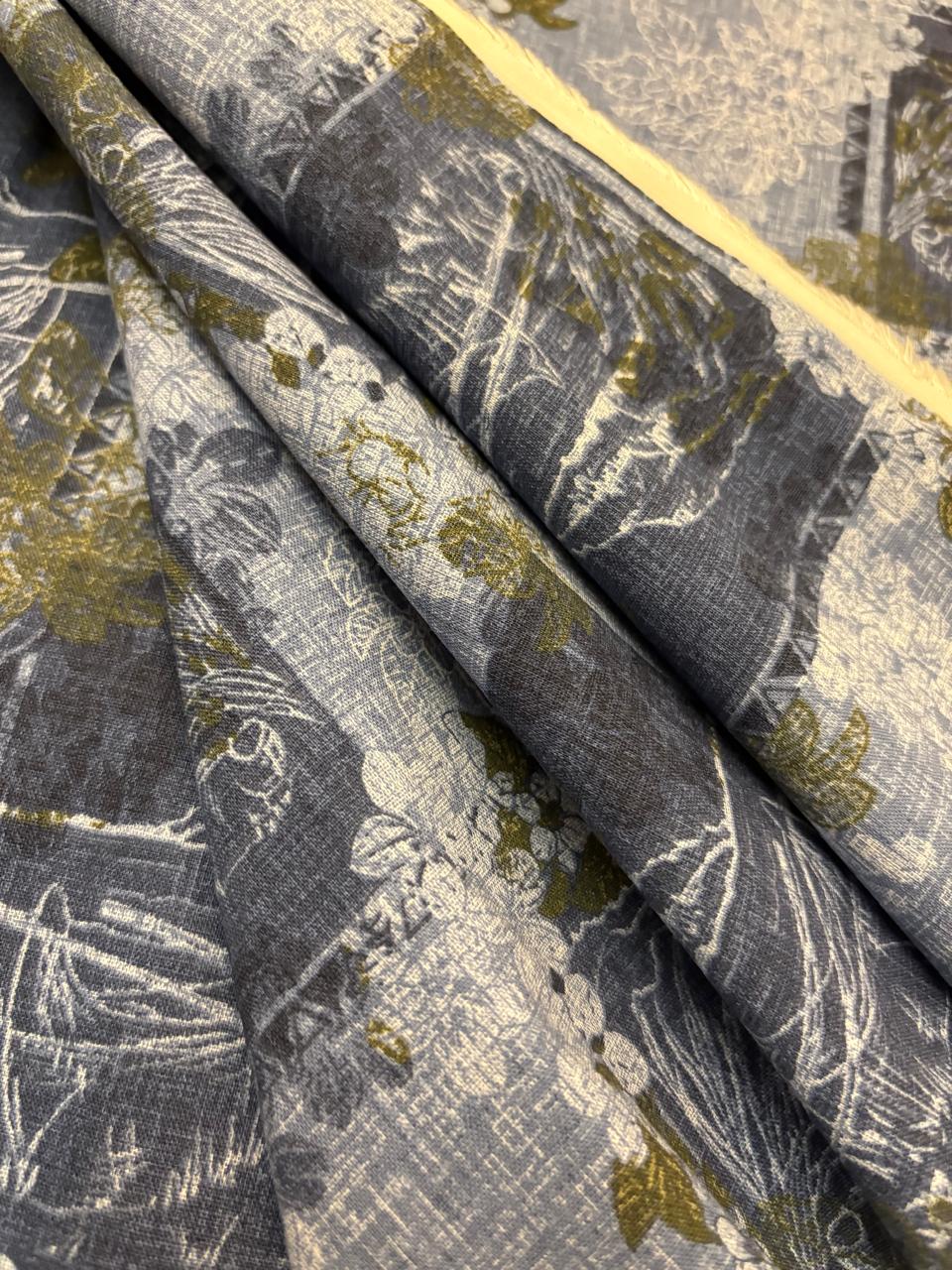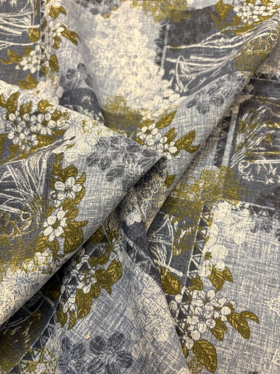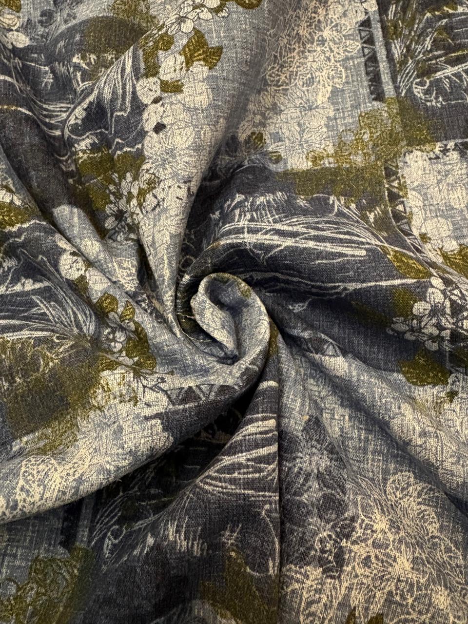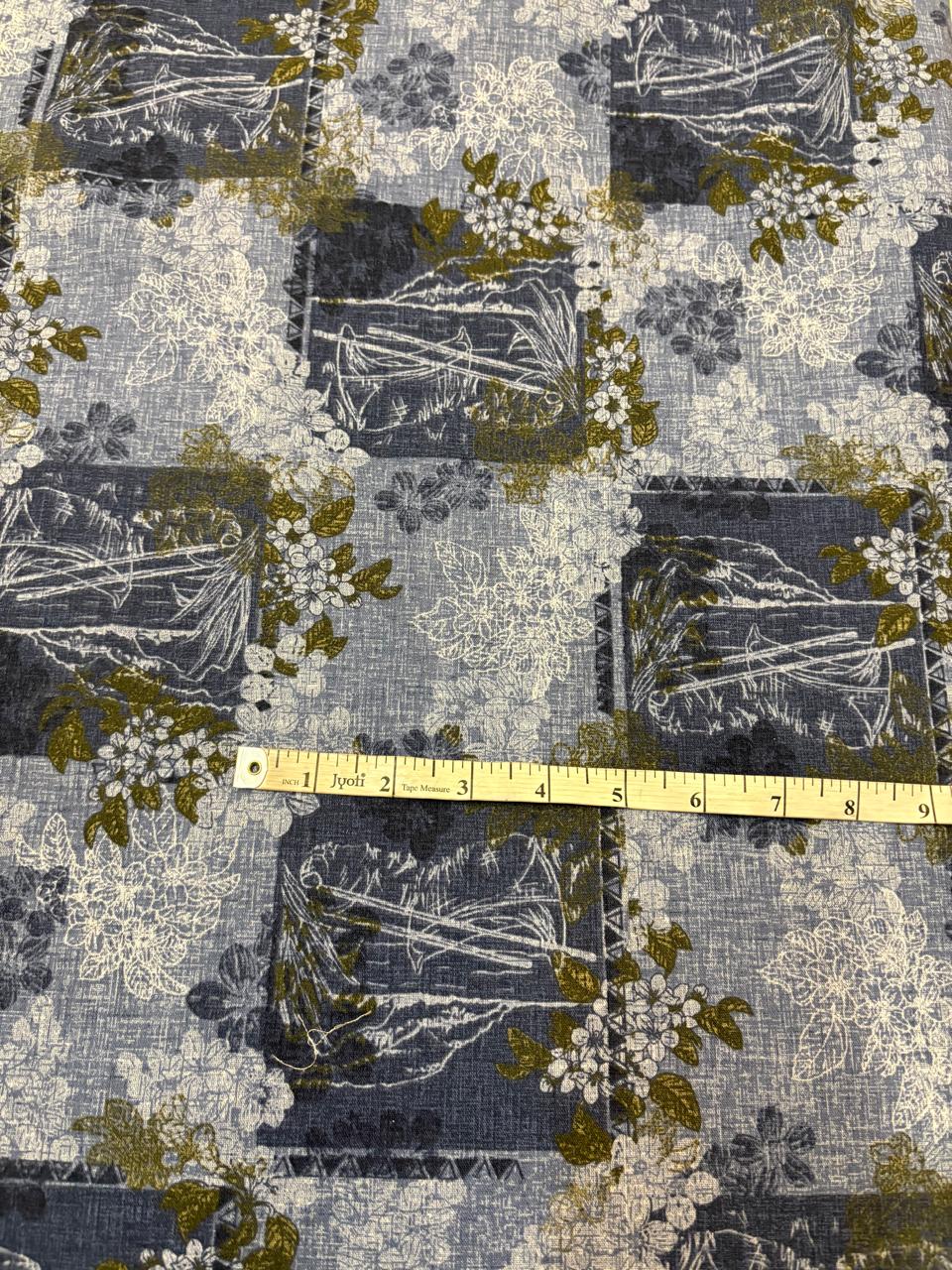 Cotton linen shades of denim blue color with square motif and floral print all over [20751]