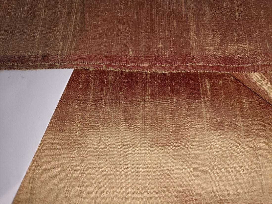 A plain weave, rather lustrous and crisp silk fabric with pronounced irregular ribs formed by slubbed yarns. The slubs are formed by the spinning of silk from a double (from which the name derives) silkworm cocoon, which can't be unwound evenly in the reeling process, leaving thicker spots in the filaments.