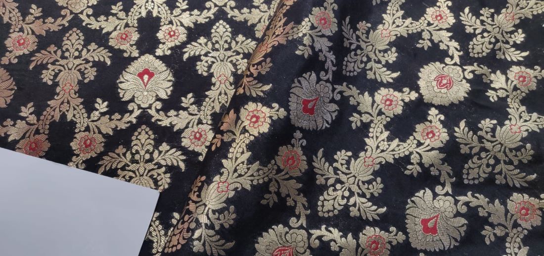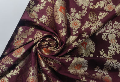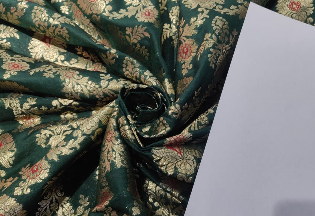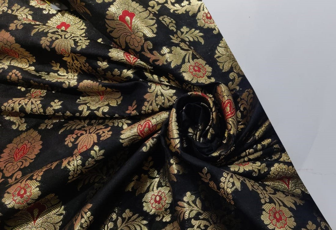 Silk Brocade fabric 44" wide BRO864 available in 7 colours [black,red,green,maroon,ink,purple]