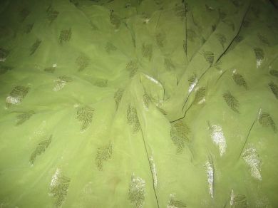 CLOSEOUT- Polyester georgette fabric with metalic silver & gold jacquard~Apple Green colour