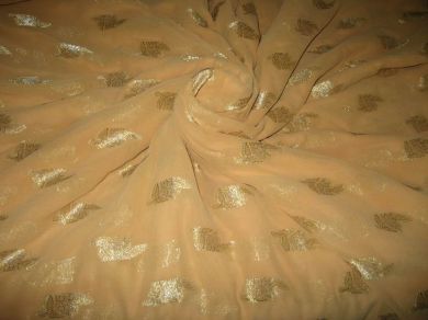 Polyester georgette with metalic silver & gold jacquard~Mustard Yellow colour
