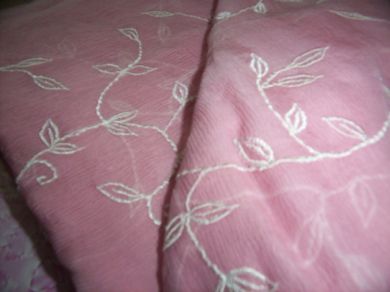 Silk chiffon fabric 44~embroidered ~rose colour"