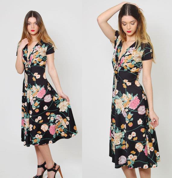 black floral print Scuba Knit fabric 59" wide- for fashion wear B2SCUBA83[4][8127]