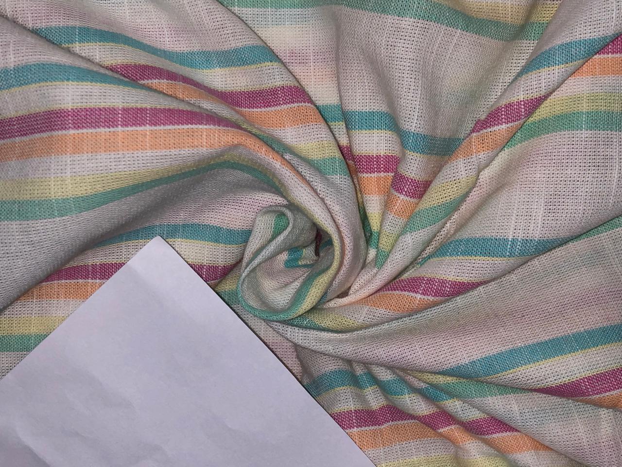Cotton Viscose Linen yarn dyed multi color stripe Fabric 58" wide [16605]