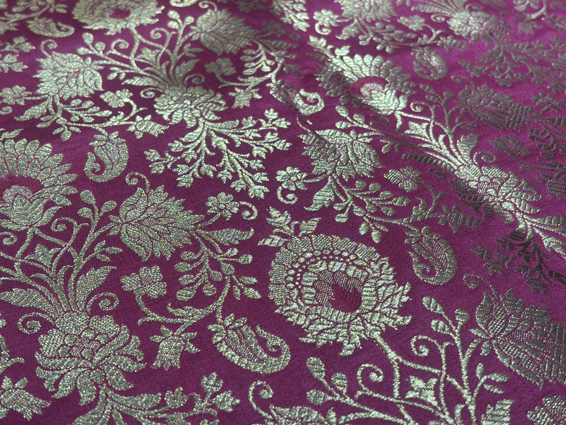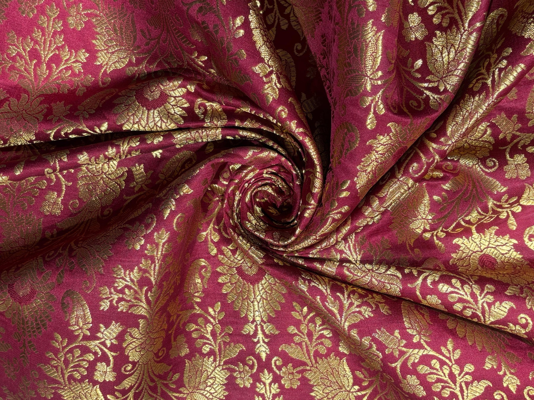 Silk Brocade fabric 44" with metallic gold jacquard available in 3 colors bright pink, black and burgundy [BRO1059]