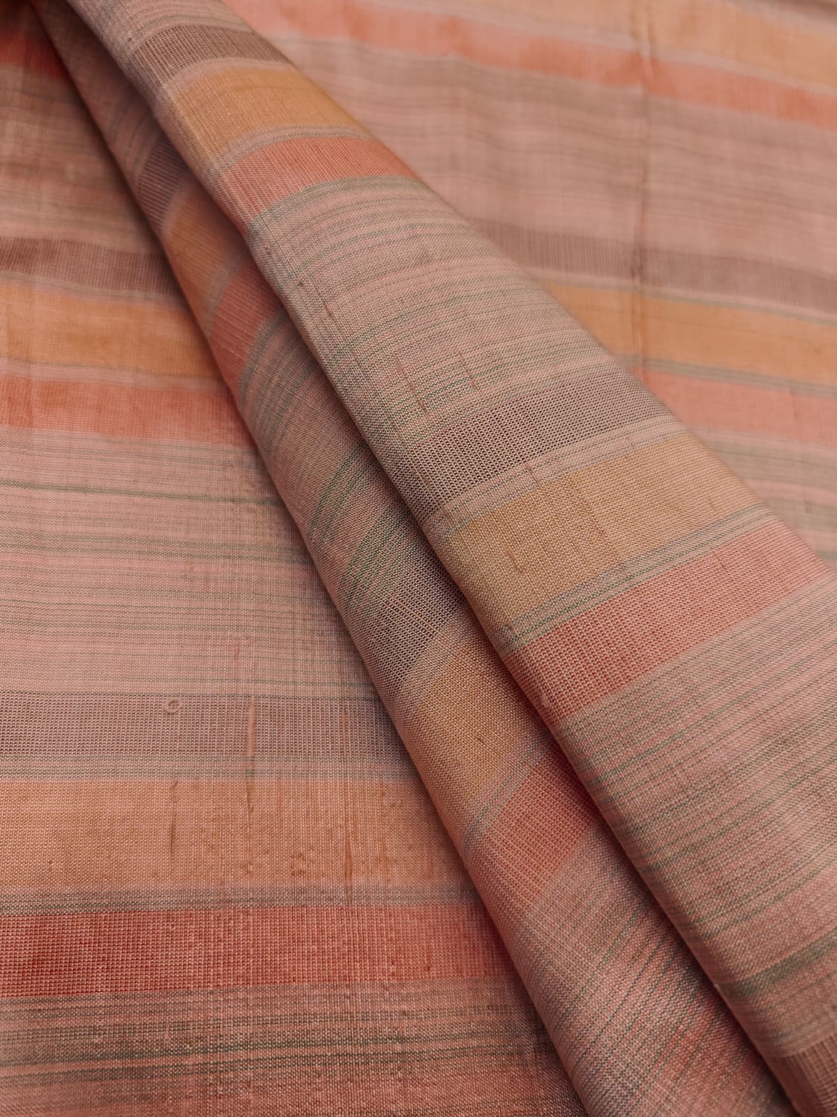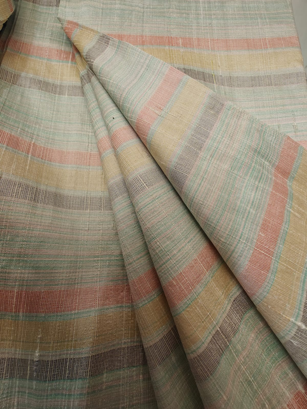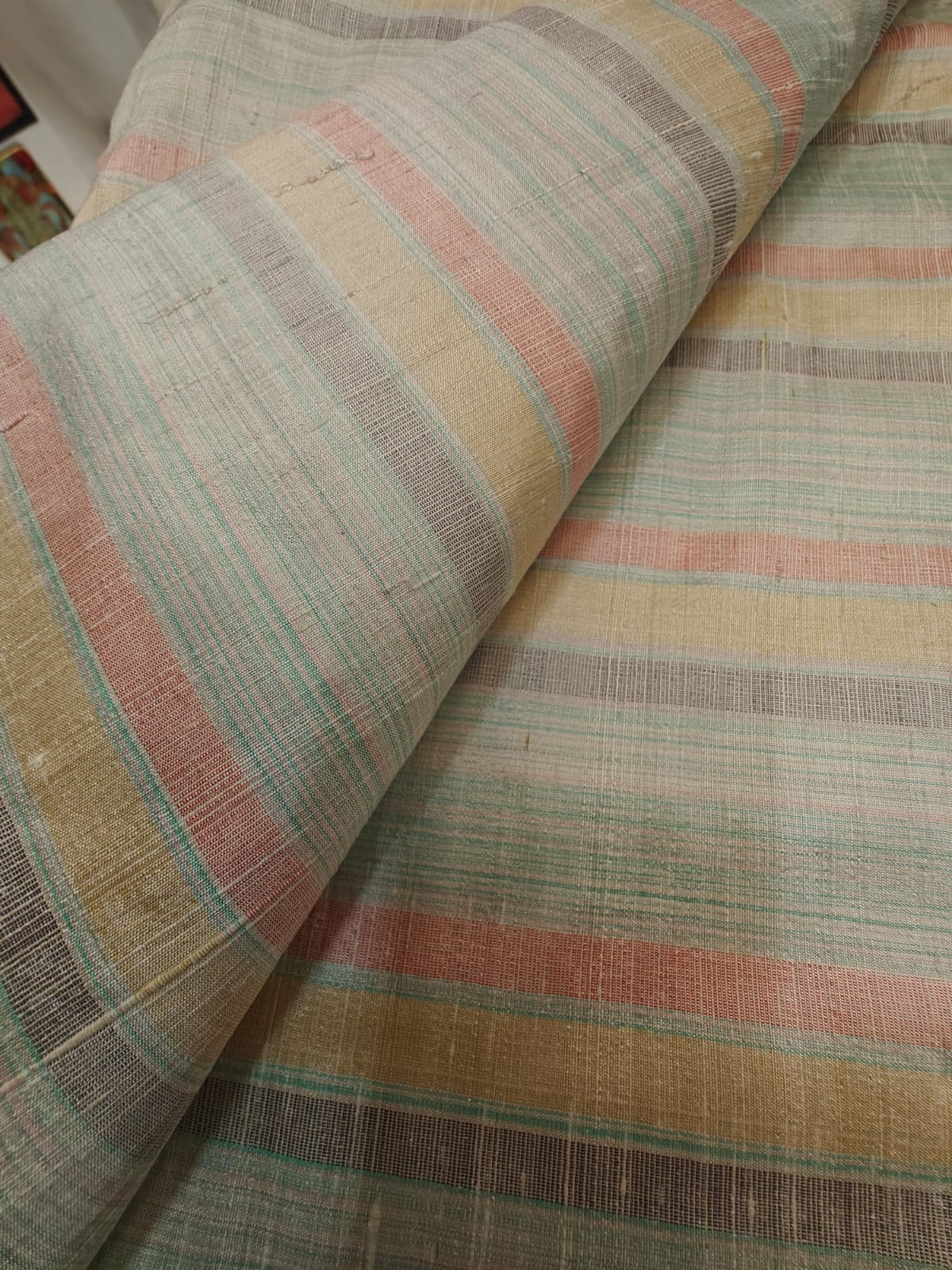 100% Pure Silk dupion with slubs, stripes 44" wide available in 3 color combinations sea green/yellowpink/lilac AND pink/candy pink/peach/lilac AND sea blue/sea green/lilac DUPS79[1/2]DUPS80[1]