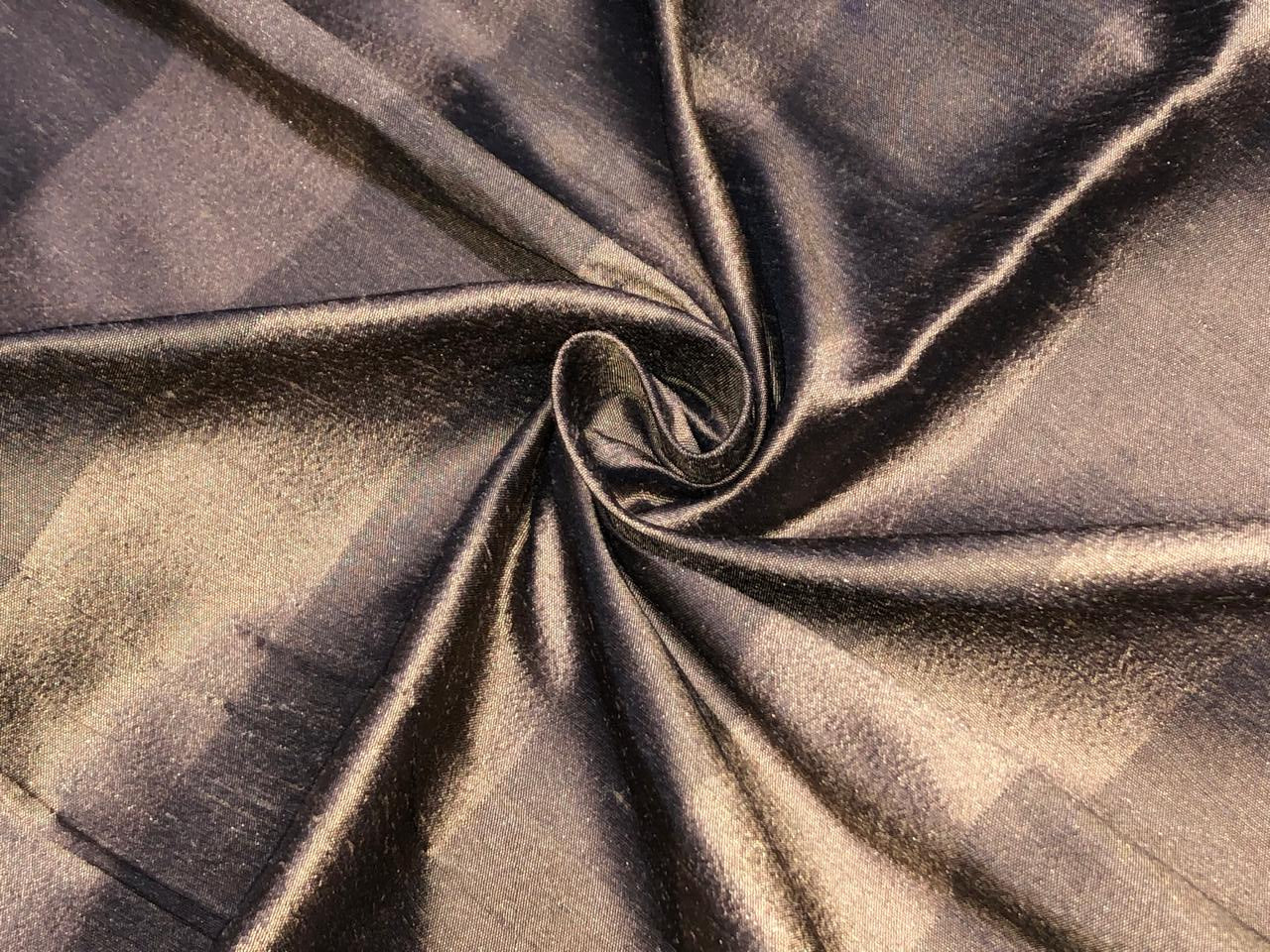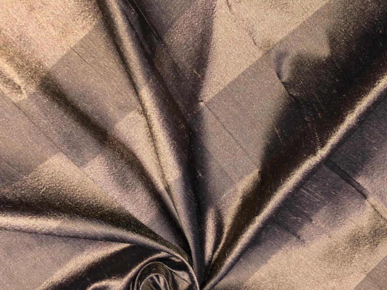 PURE SILK Dupioni FABRIC Golden Brown & Burnt Brown color Stripes DUPS27[5]