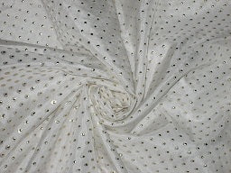RICH IVORY COLOUR HABOTAI SILK Fabric with Gold Embossing