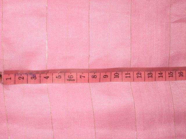 Pure silk fabric available in "Baby Pink colour" with thin gold stripes -22 grams in weight- 42" width