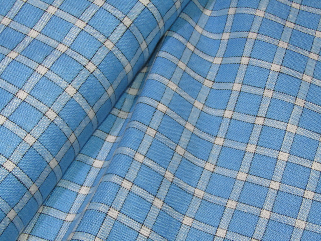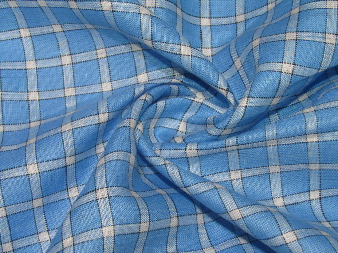 100% Linen Blue plaids 60's Lea Fabric 58" wide [10802]