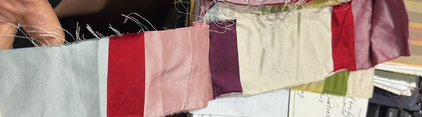 No fabric is too difficult for us to create! We're thrilled to have completed a client's special custom order of mulberry silk taffeta stripes in ten stunning colorways.
