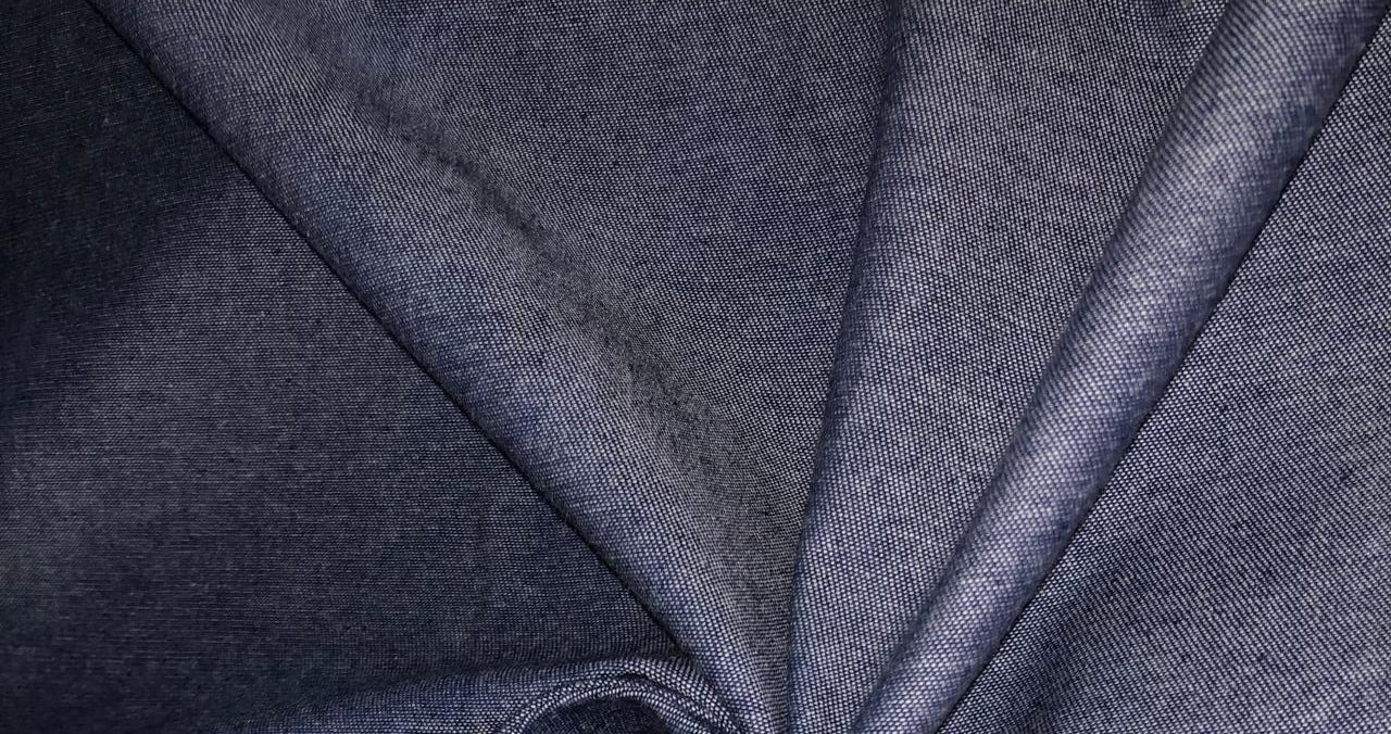Denim is a strong cotton fabric made using a twill weave, which creates a subtle diagonal ribbing pattern. The cotton twill fabric is warp-facing, meaning that the weft threads go under two or more warp threads, and the warp yarns are more prominent on the right side.