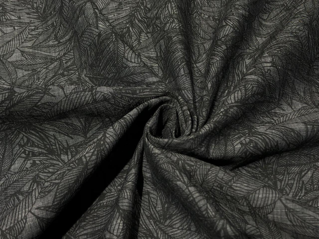 100% Cotton Poplin Black And Grey Botanical Leaf Print [17014]