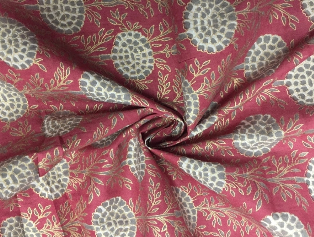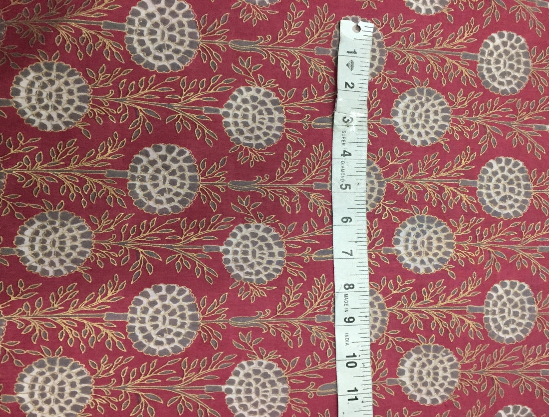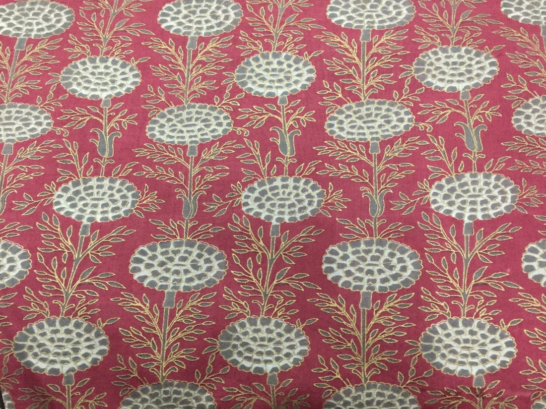 100% Cotton Printed Burgundy with grey floral golden jacquard Fabric 44" wide sold by the yard [11171]