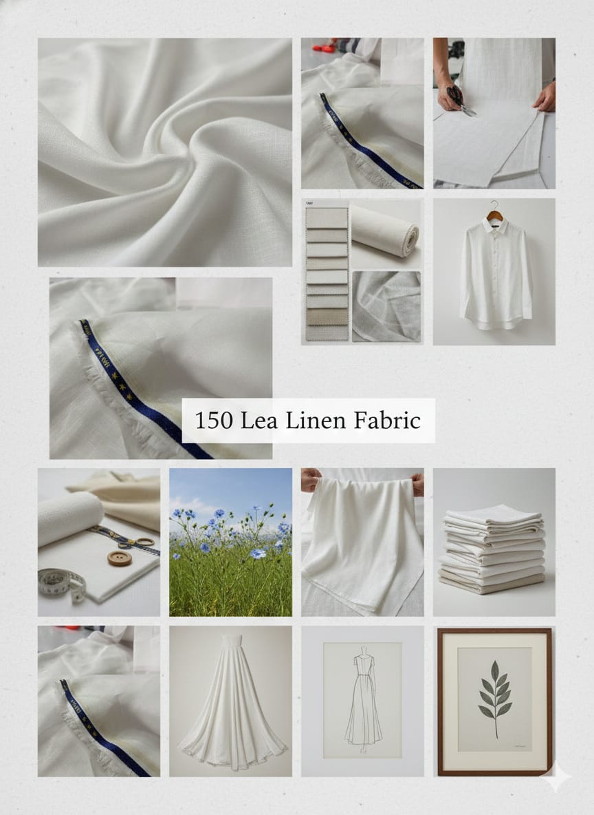 The 150 Lea White Pure Linen Fabric is designed for those who appreciate quality and luxury. It is unisex and can be stitched into shirts, kurtas, or kurtis by a preferred tailor. The fabric is known for its universal appeal and is suitable for tropical wear. It is specifically mentioned that the 150 Lea fabric is for those who excel in their endeavors, as it is related to the number of yarns in a pound divided by 300